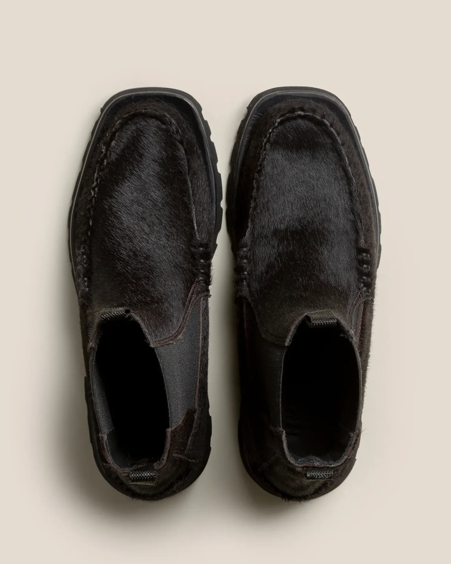 Mid-calf Chelsea boot crafted in crafted in Spanish calf hair. Hand-sewn using the traditional moccasin construction.
