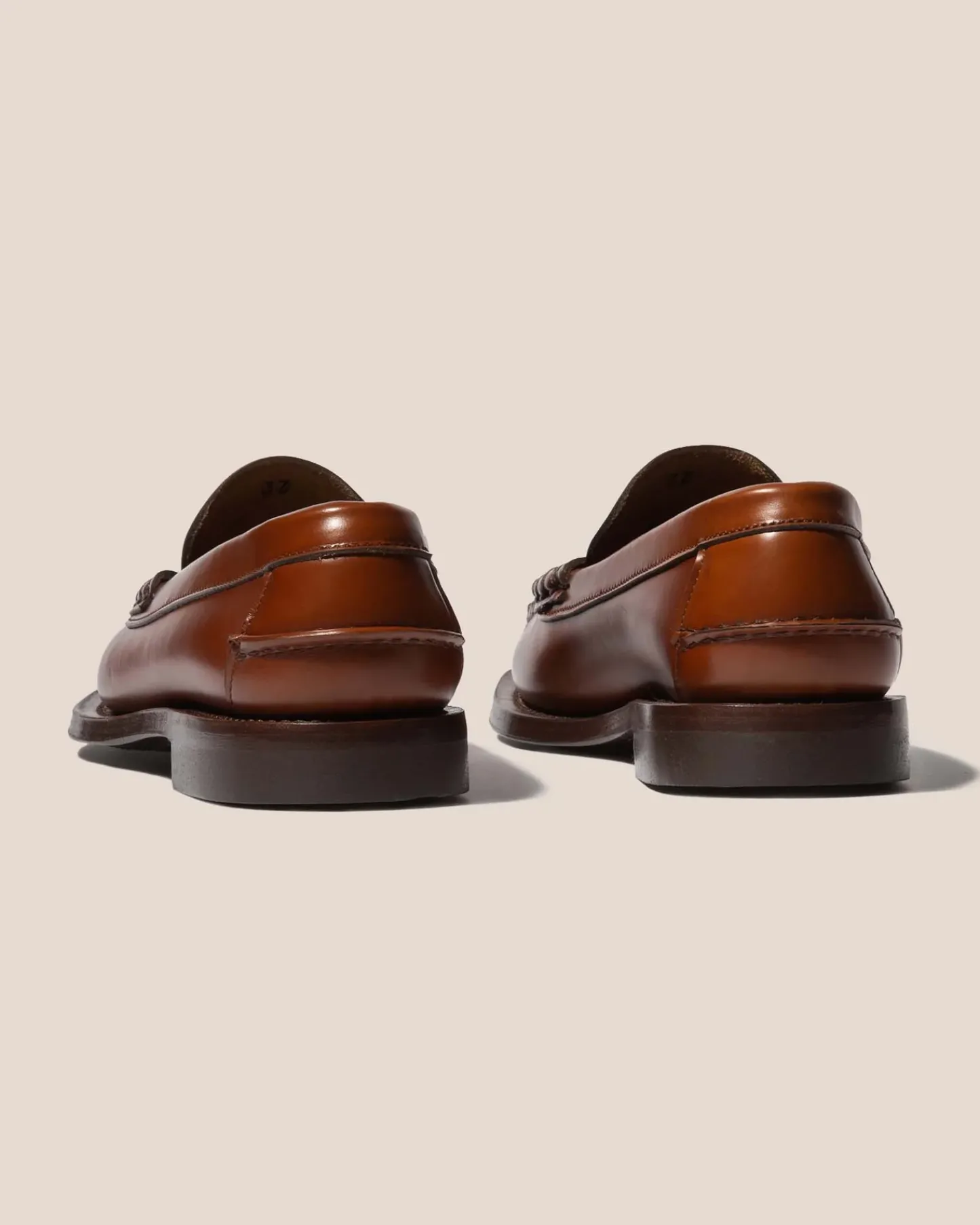 Slip-on loafer with interlaced detail crafted in Spanish structured calf leather.