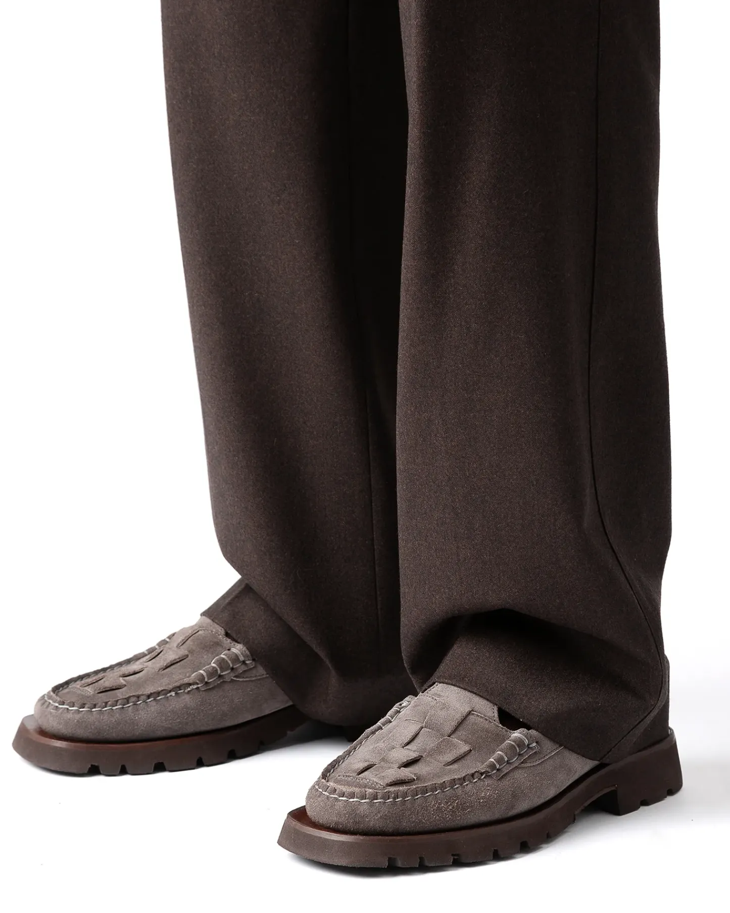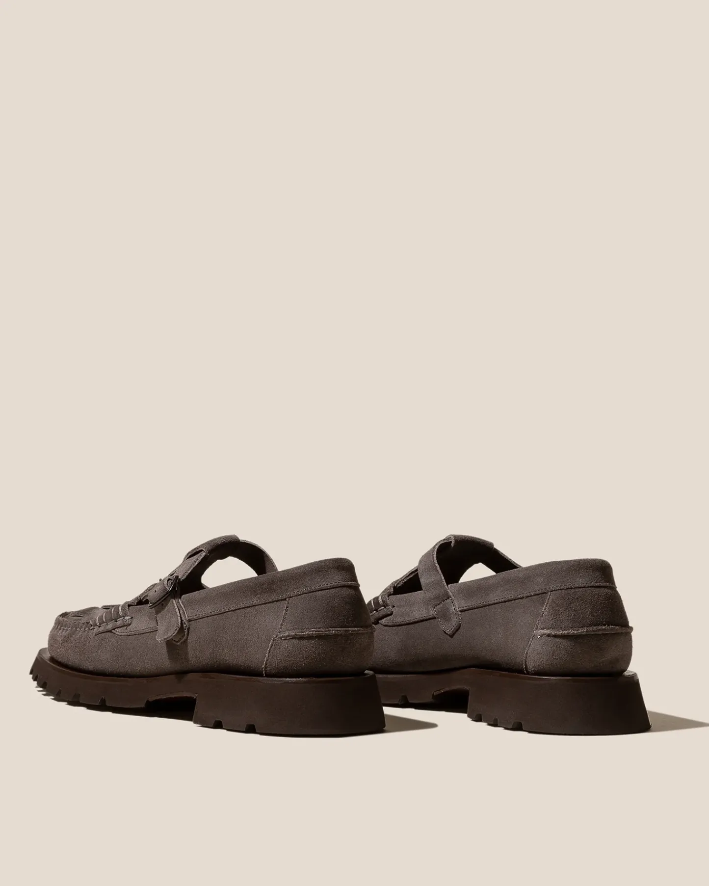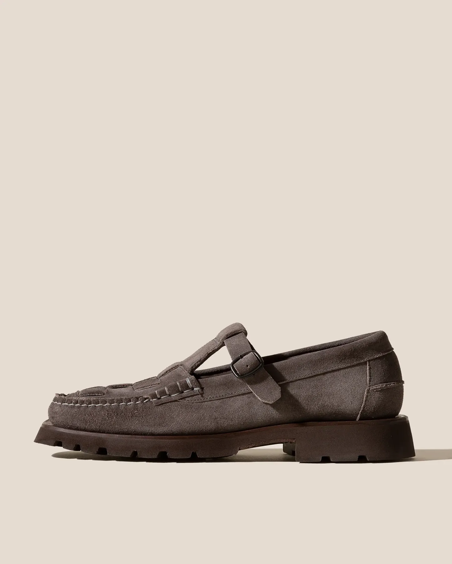 T-bar loafer crafted in double sided calf suede. The upper has been hand-sewn using the traditional moccasin construction.