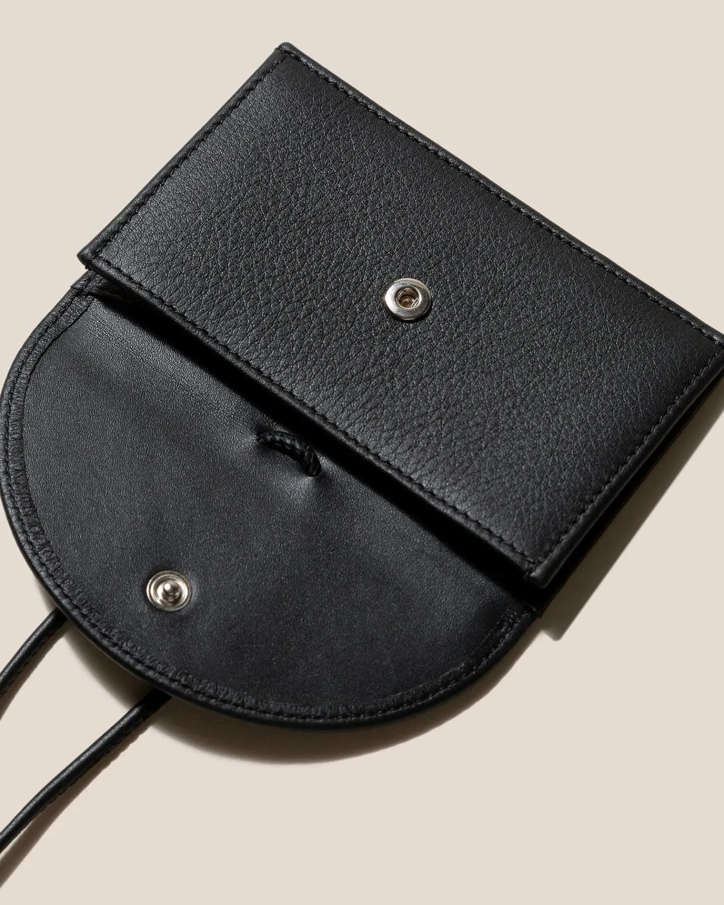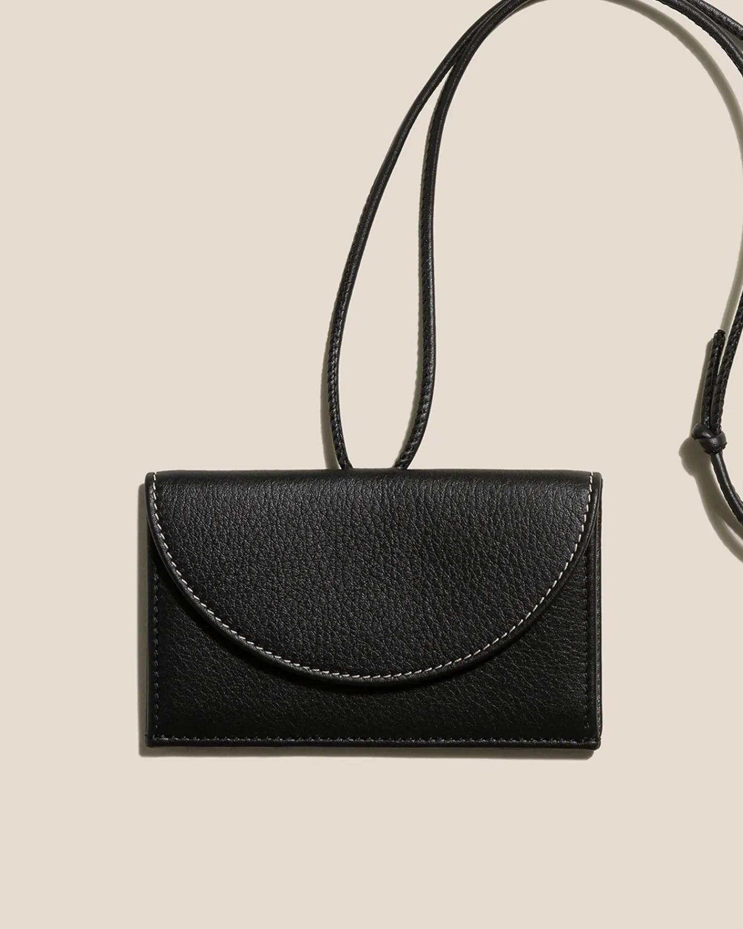Coin purse and card holder wallet with adjustable strap crafted in calf leather.