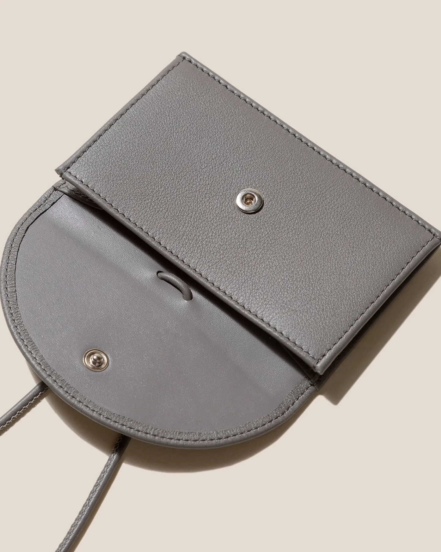 Coin purse and card holder wallet with adjustable strap crafted in calf leather.