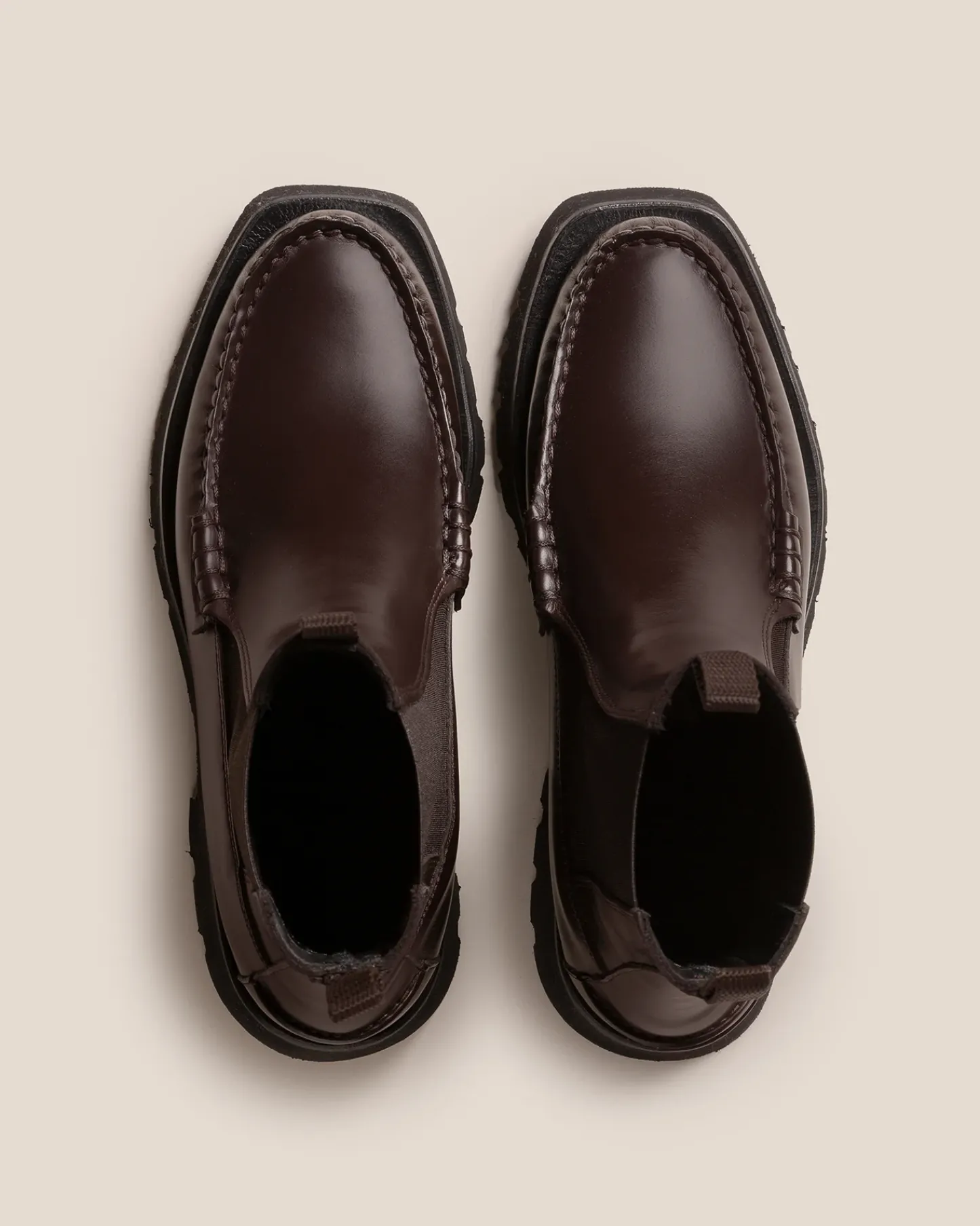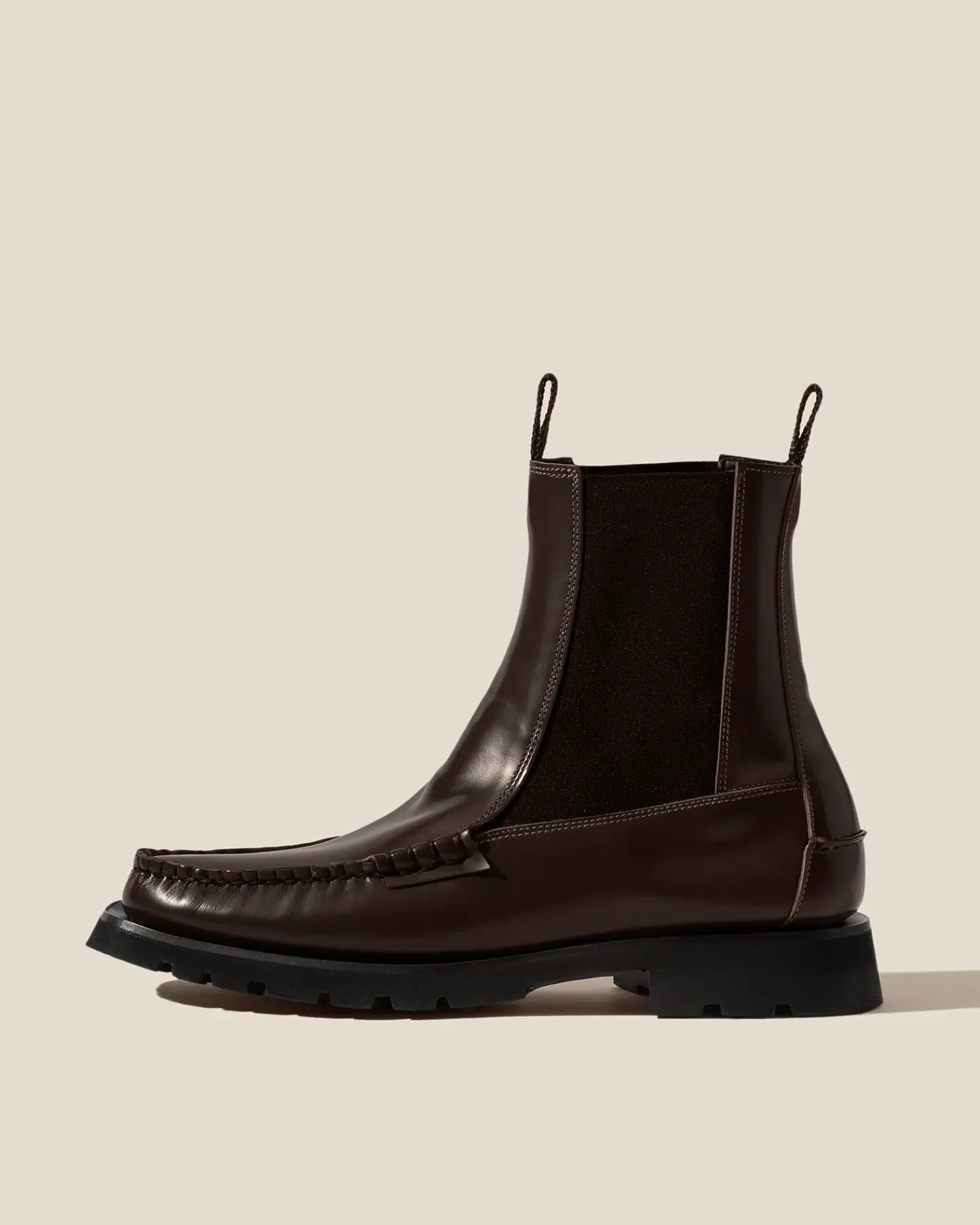 Mid-calf Chelsea boot crafted in Spanish full-grain black calf leather. Hand sewn using the traditional moccasin construction.