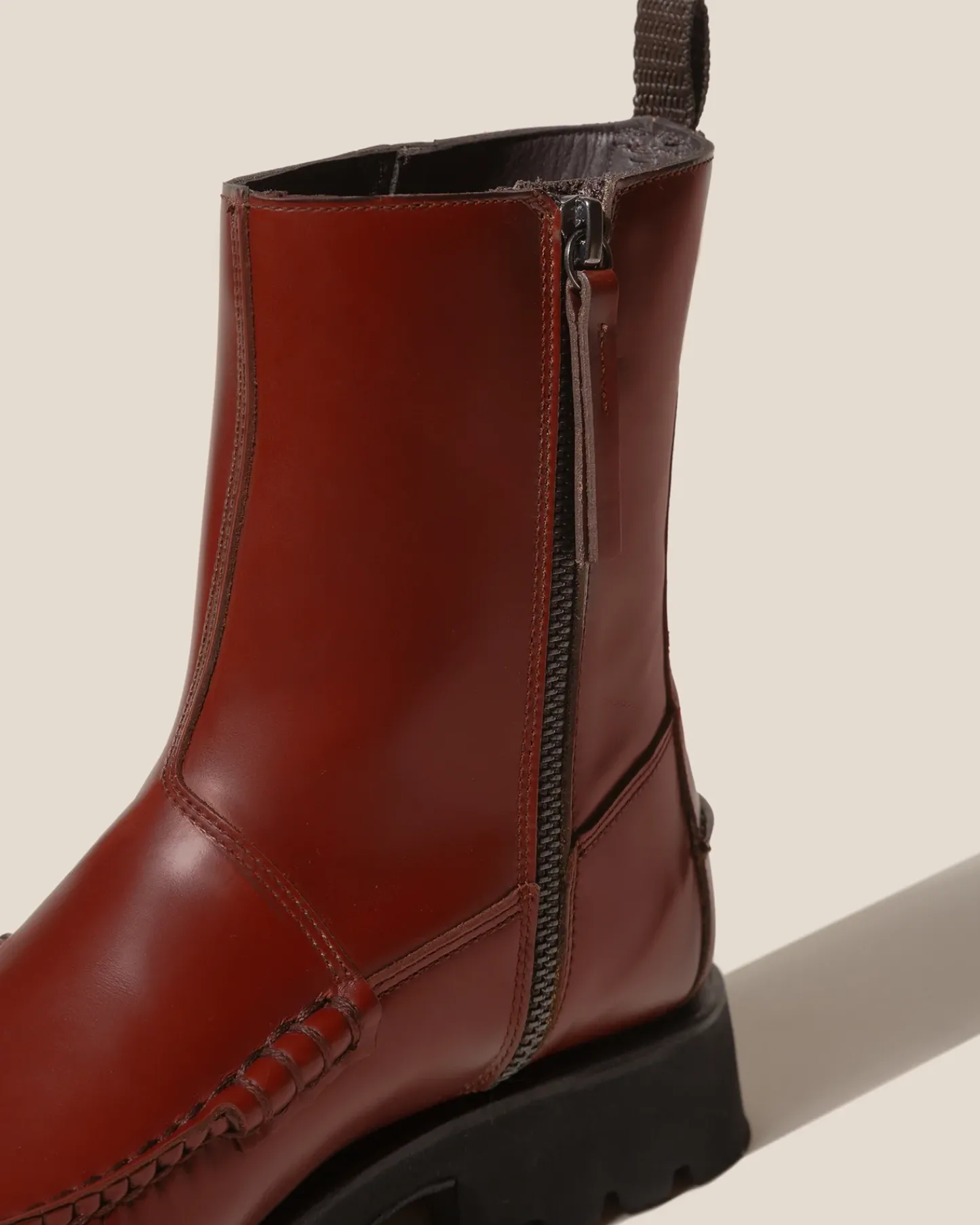 Mid-calf zipped boot, crafted in structured calf leather.