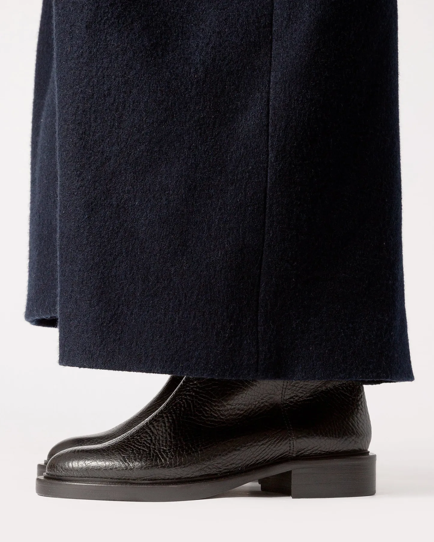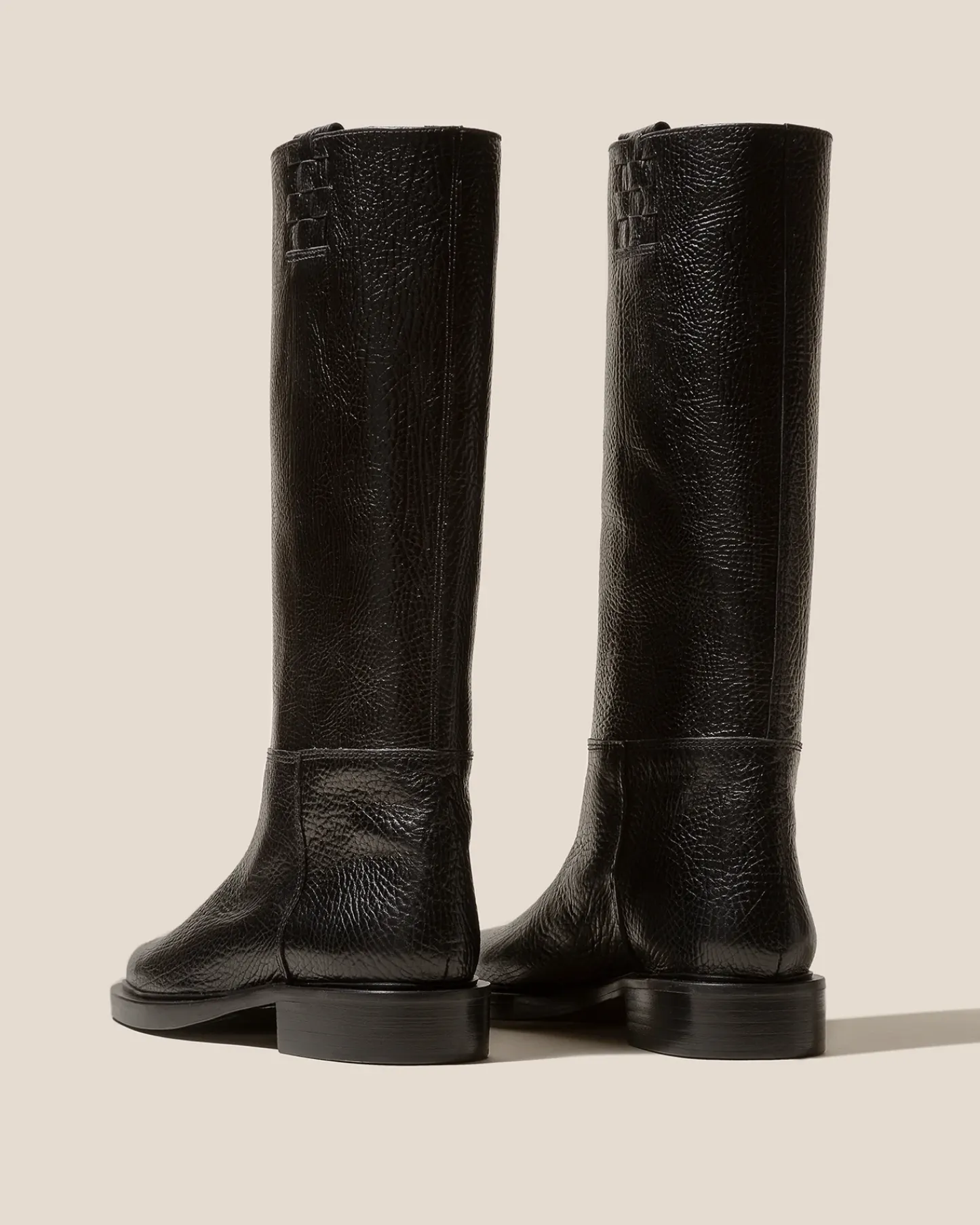 Under the knee pull-on boot with side interwoven detail, crafted in tumbled calf leather.