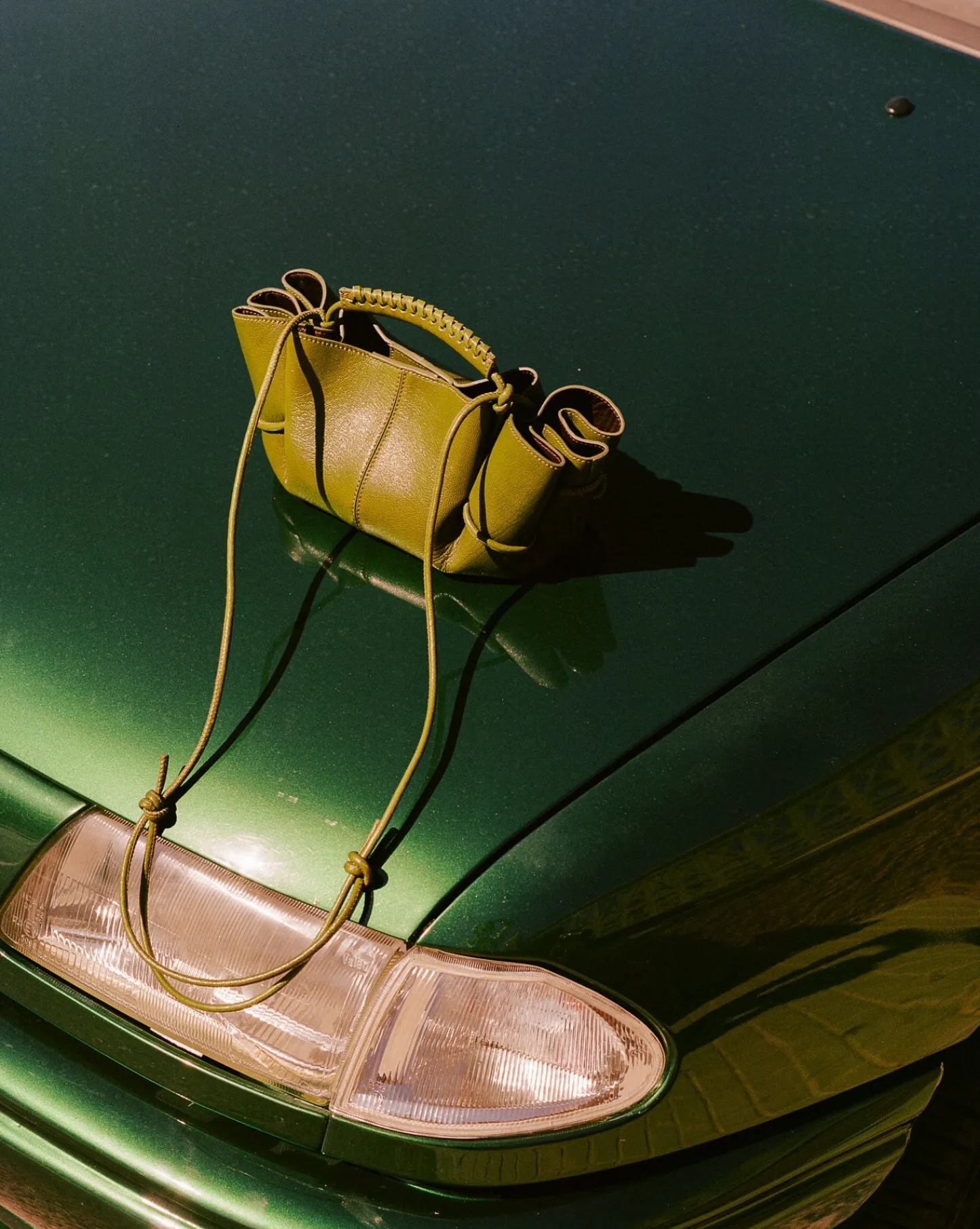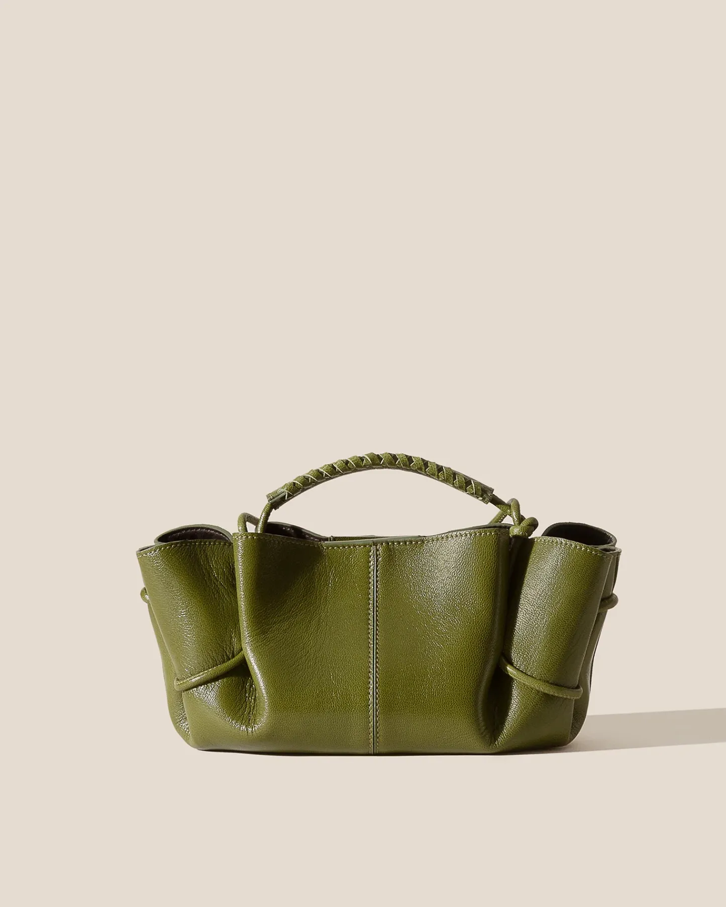 Small pleated crossbody/ handbag crafted in supple shiny lambskin.