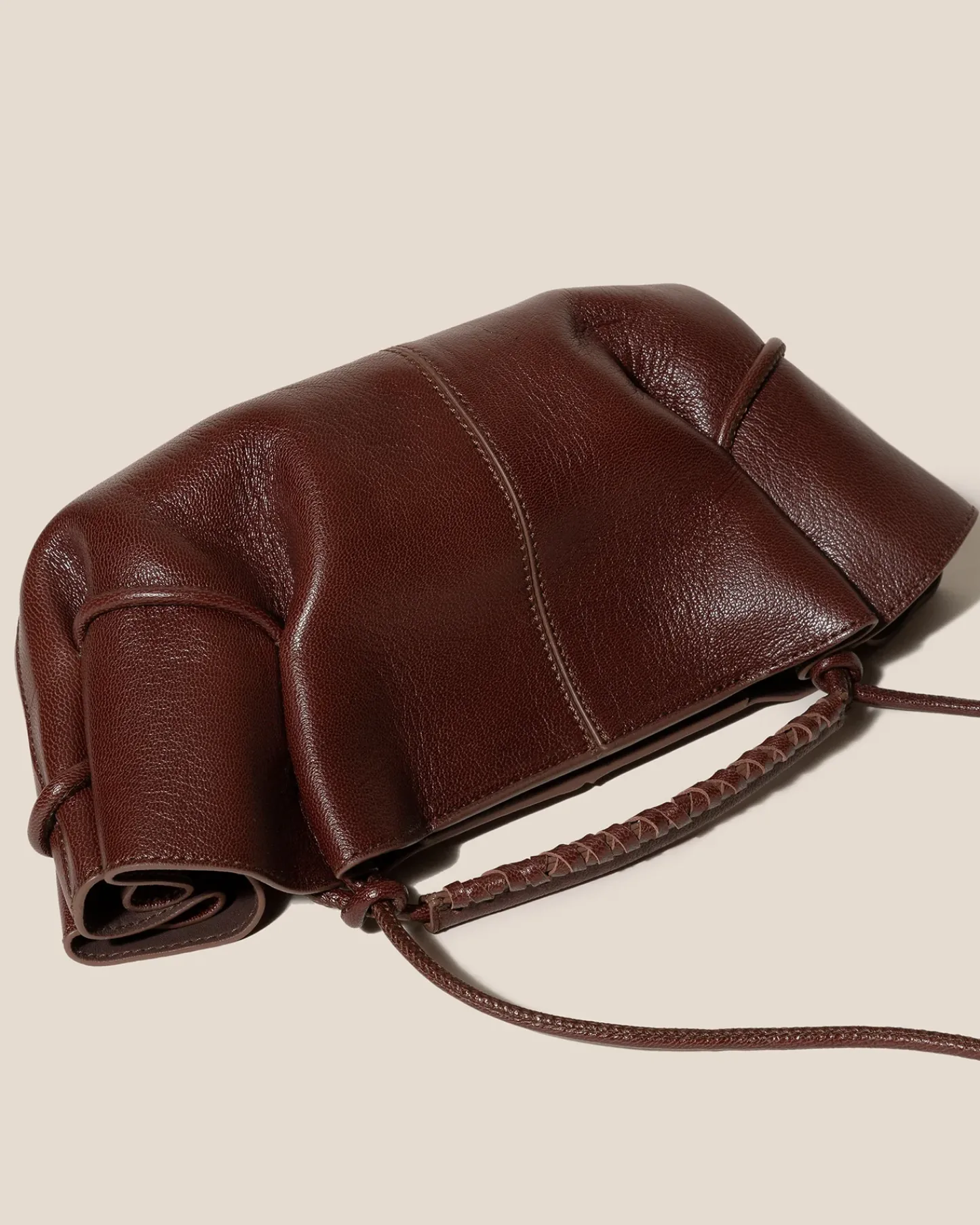 Small pleated crossbody/ handbag crafted in supple shiny lambskin.