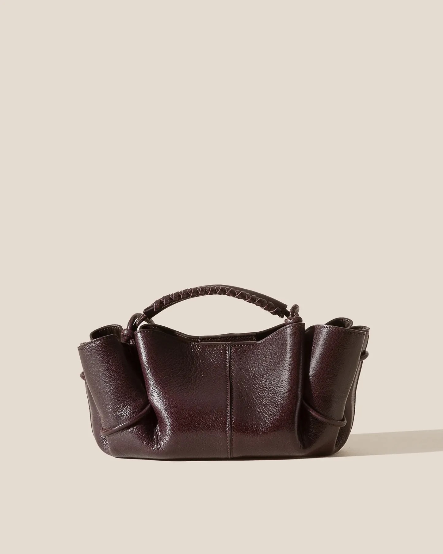 Small pleated crossbody/ handbag crafted in supple shiny lambskin.