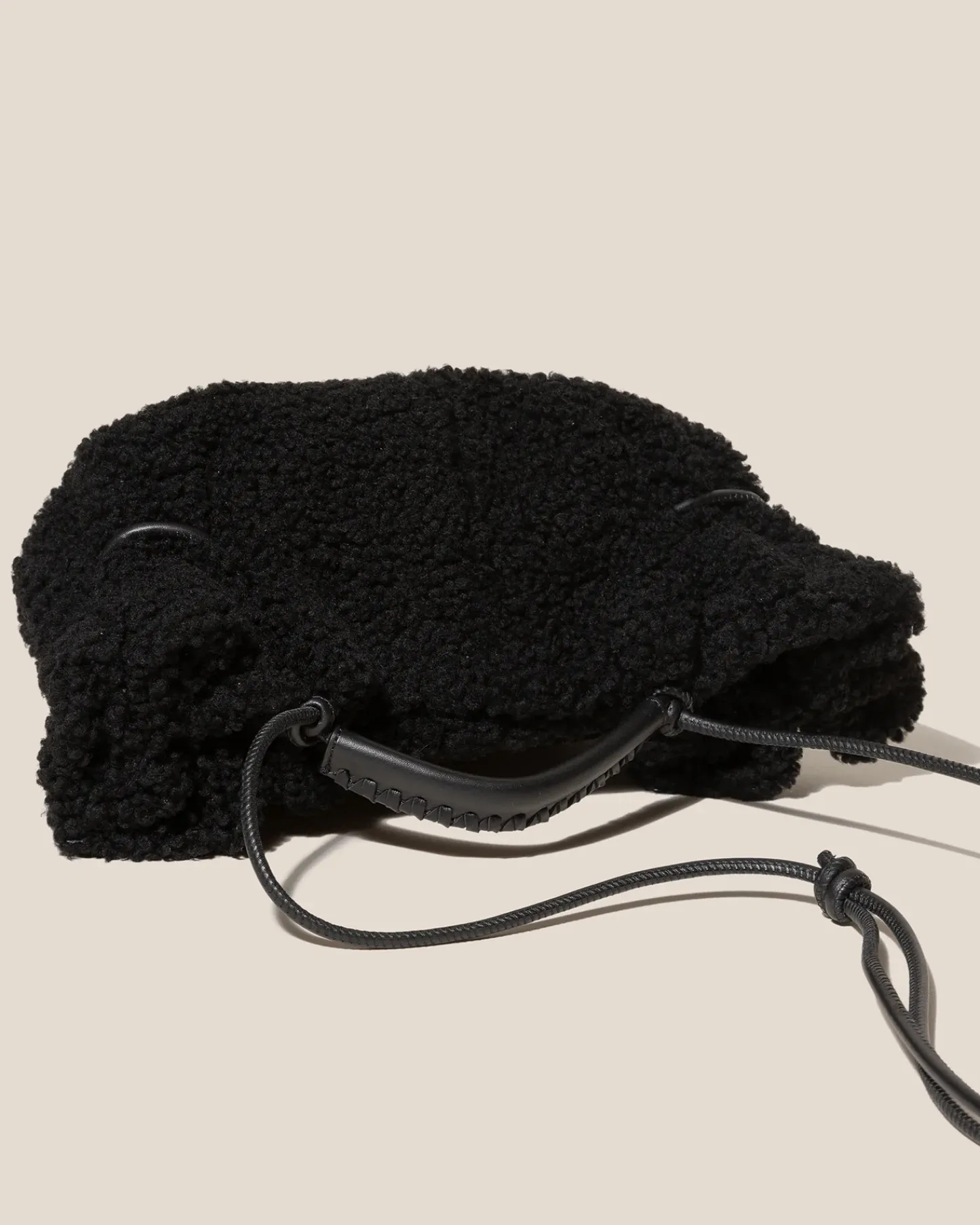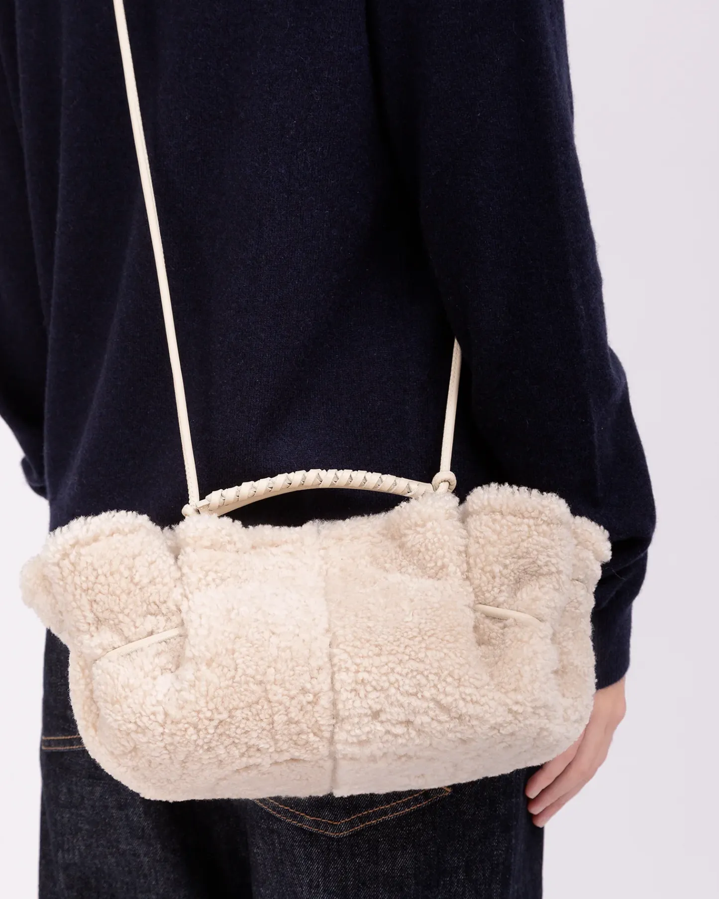 Small pleated crossbody / handbag crafted in shearling lambskin.