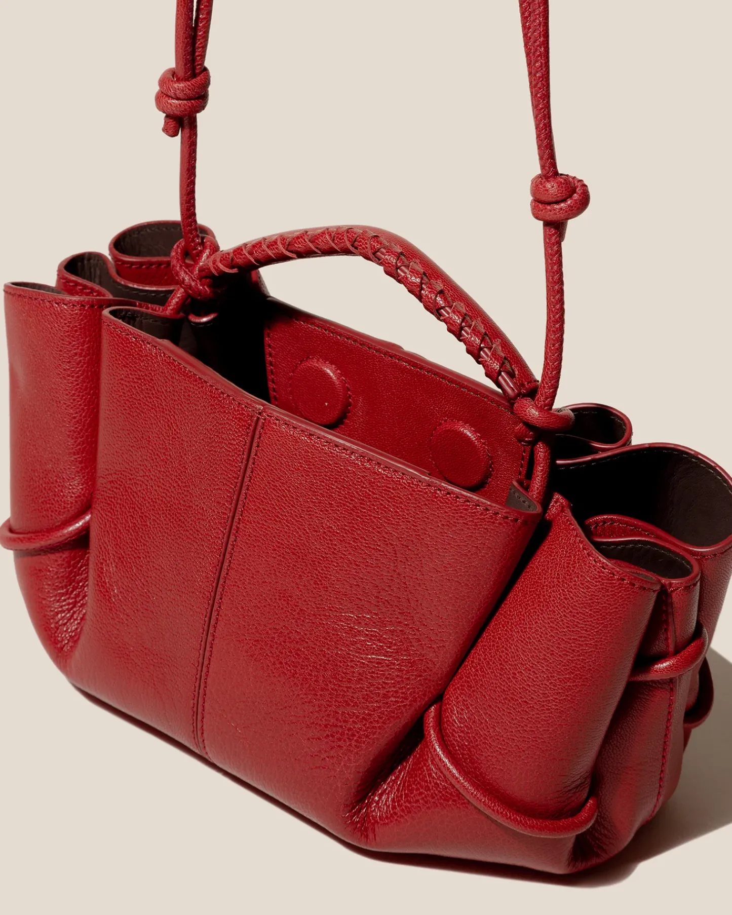 Small pleated crossbody/ handbag crafted in supple shiny lambskin.