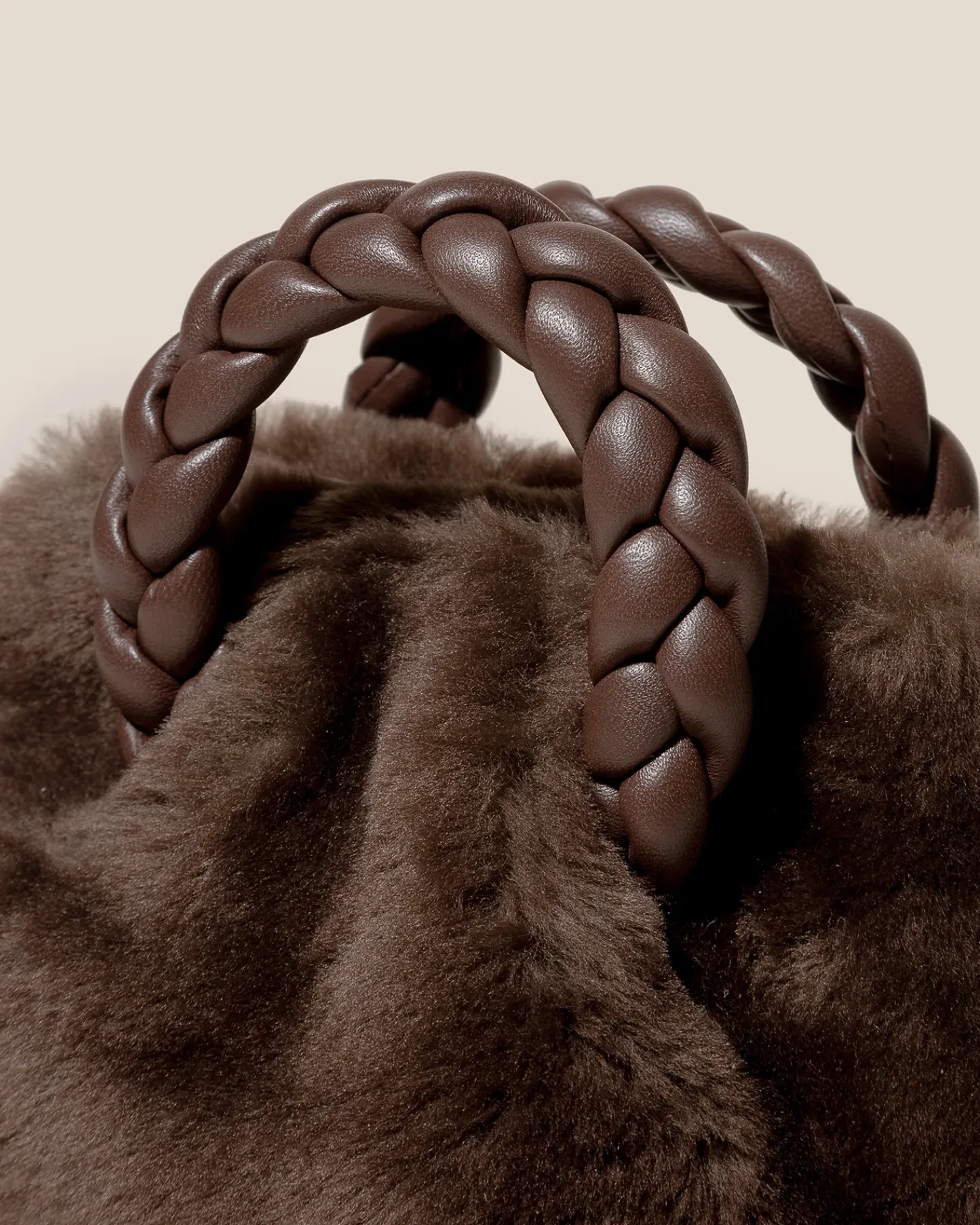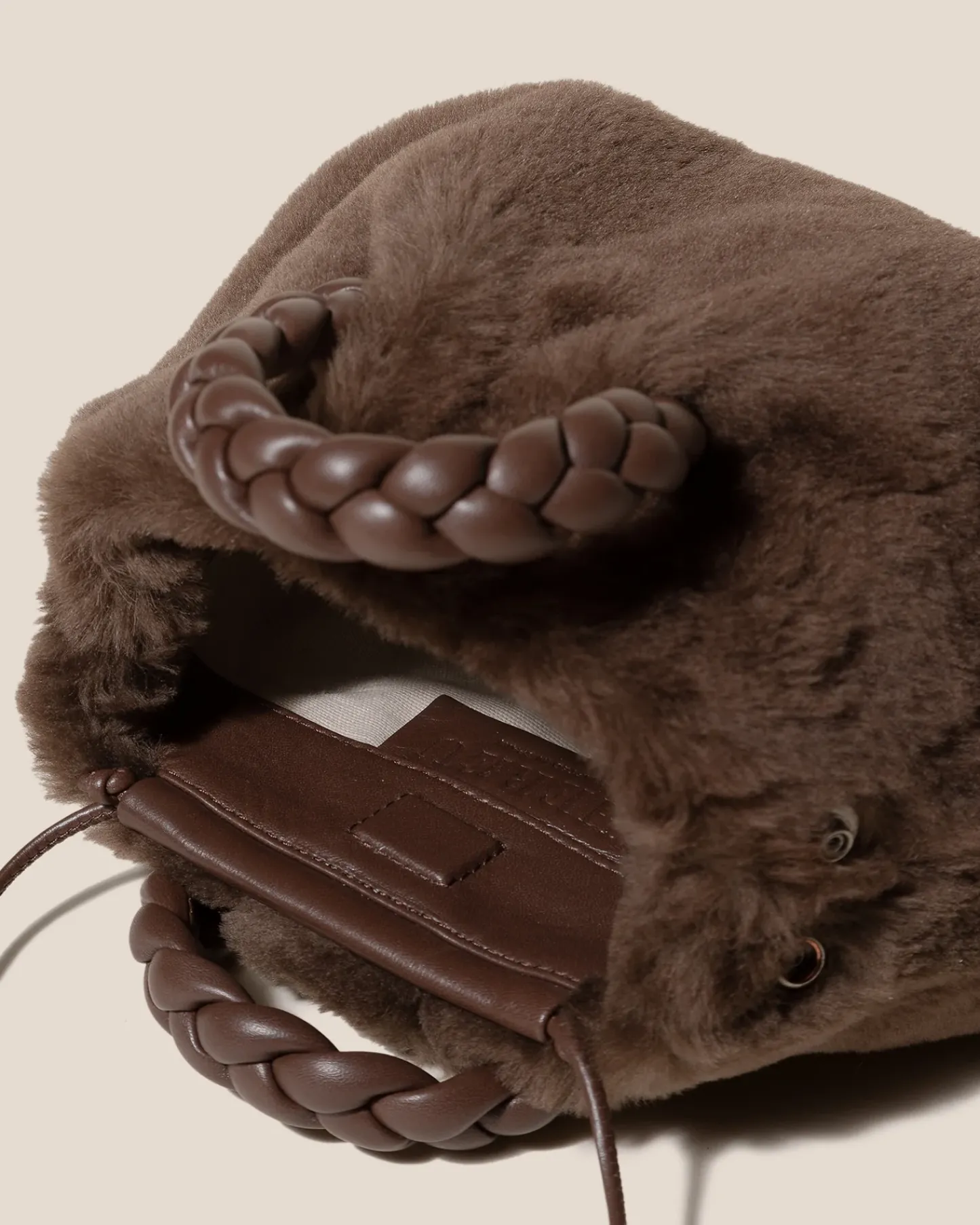 Small crossbody bag with braided leather handles, crafted in shearling sheepskin and supple lambskin.