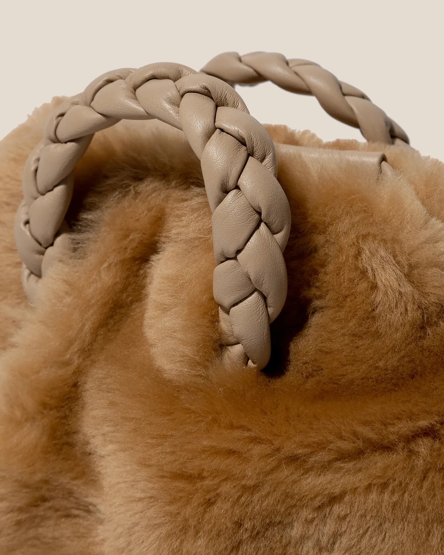 Small crossbody bag with braided leather handles, crafted in shearling sheepskin and supple lambskin.