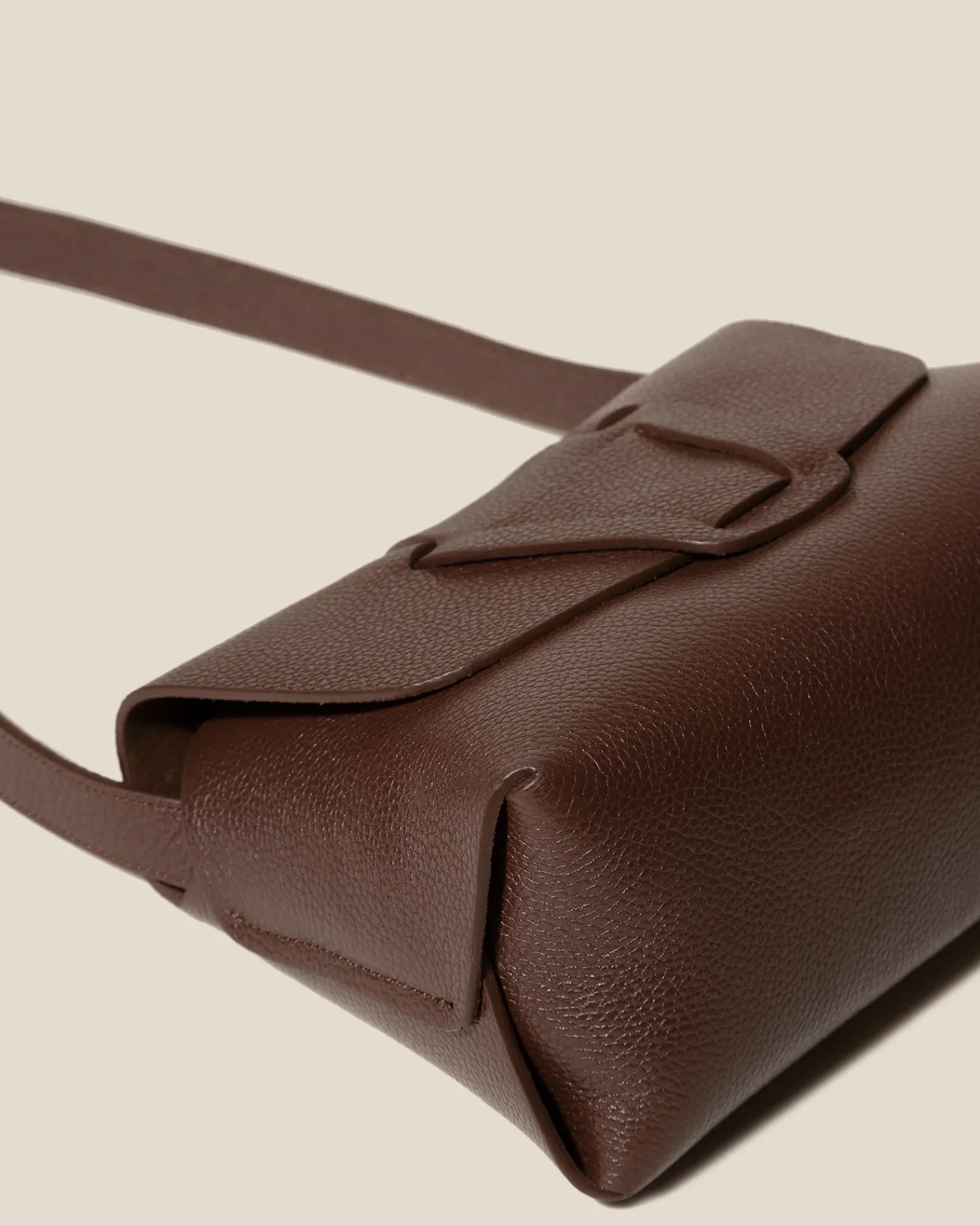 Crossbody bag with woven detail crafted in grainy structured calf leather and lined in calf suede.