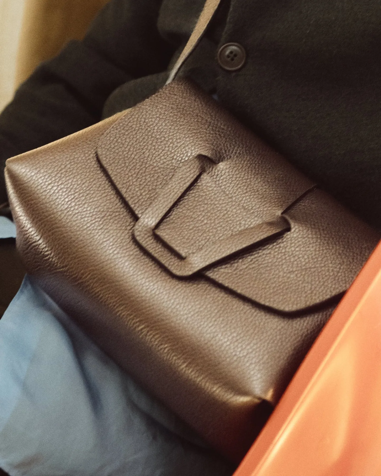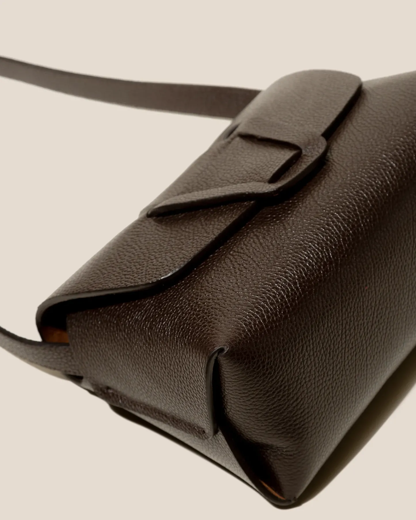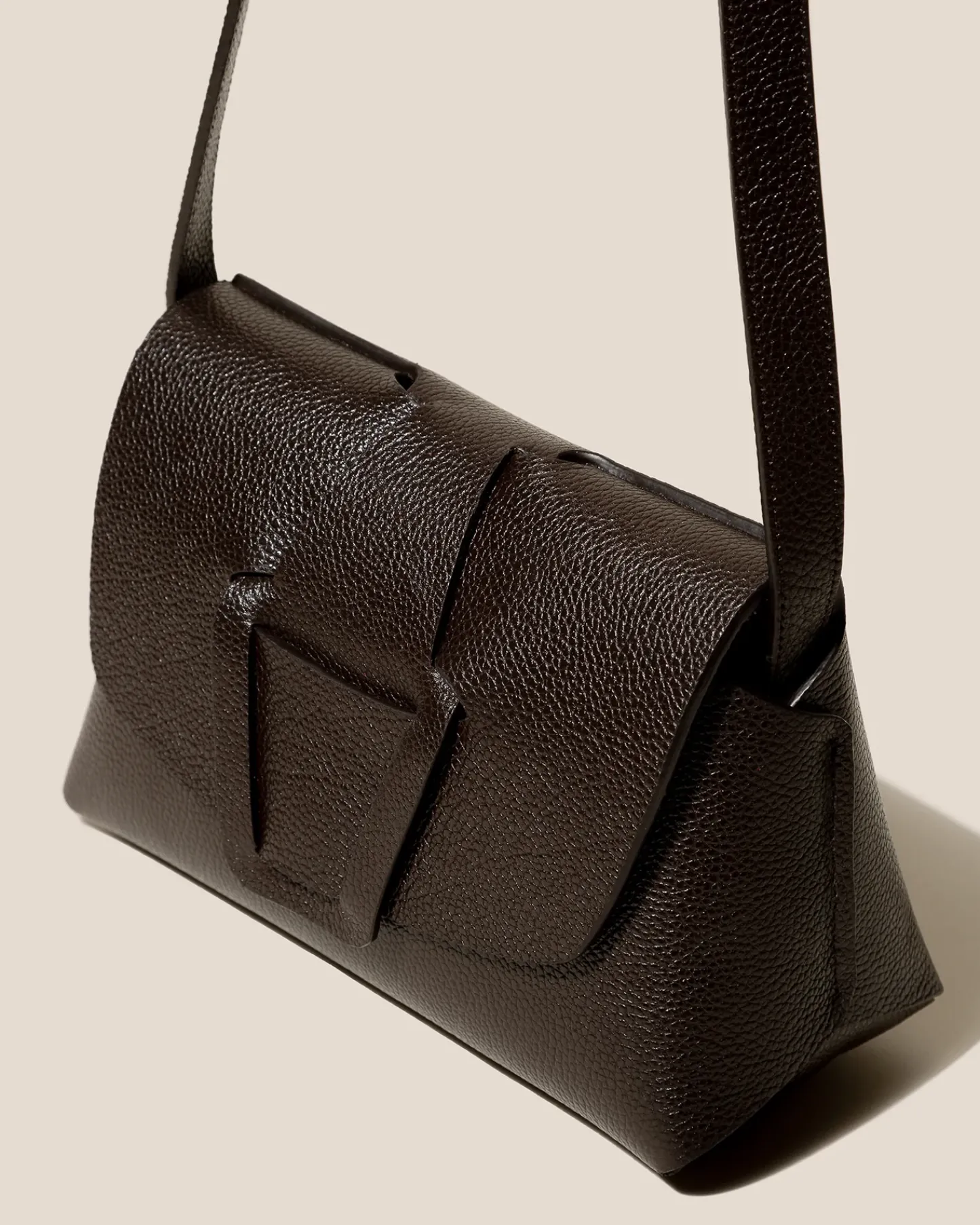 Crossbody bag with woven detail crafted in grainy structured calf leather and lined in calf suede.