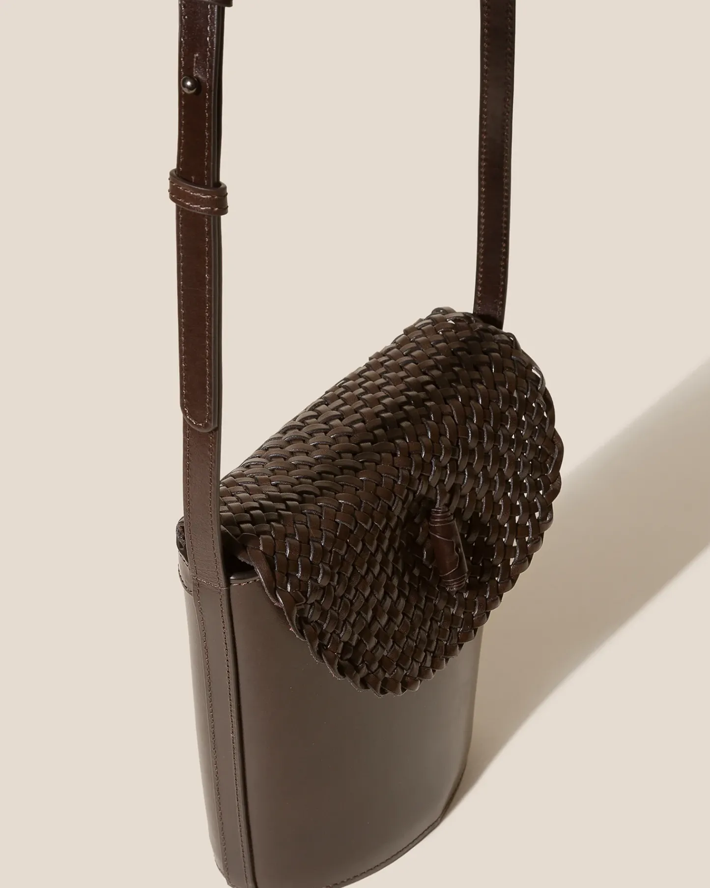 Crossbody bag with braided flap crafted in sleek calf leather.