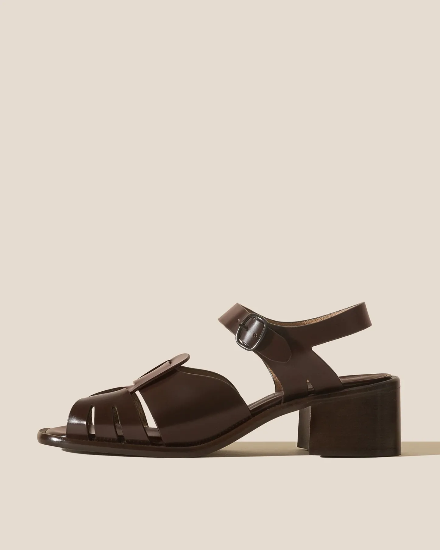 Squared open-toe fisherman sandal with cut out front detail, crafted in structured calf leather.
