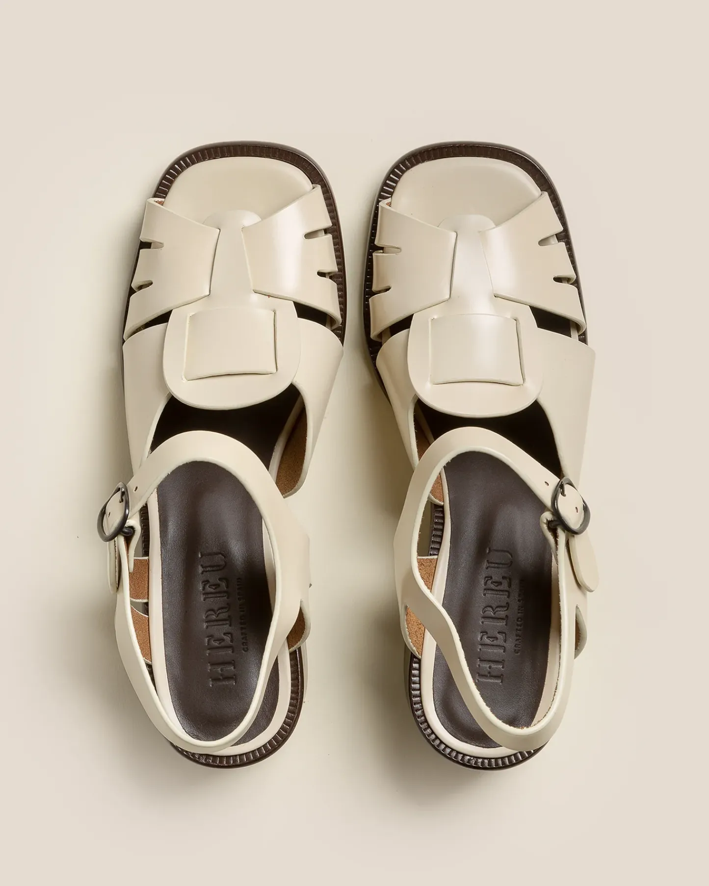 Squared open-toe fisherman sandal with cut out front detail, crafted in structured calf leather.