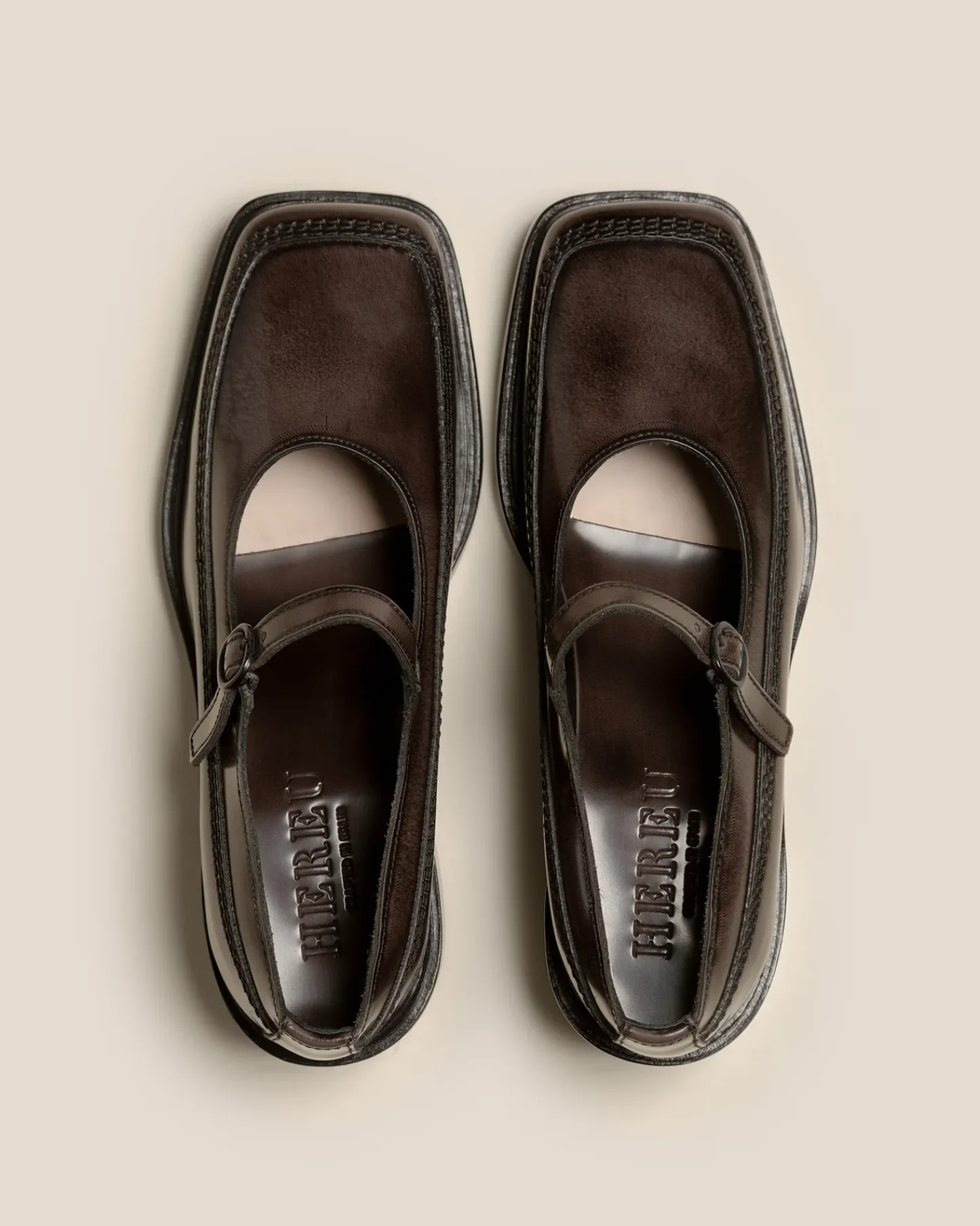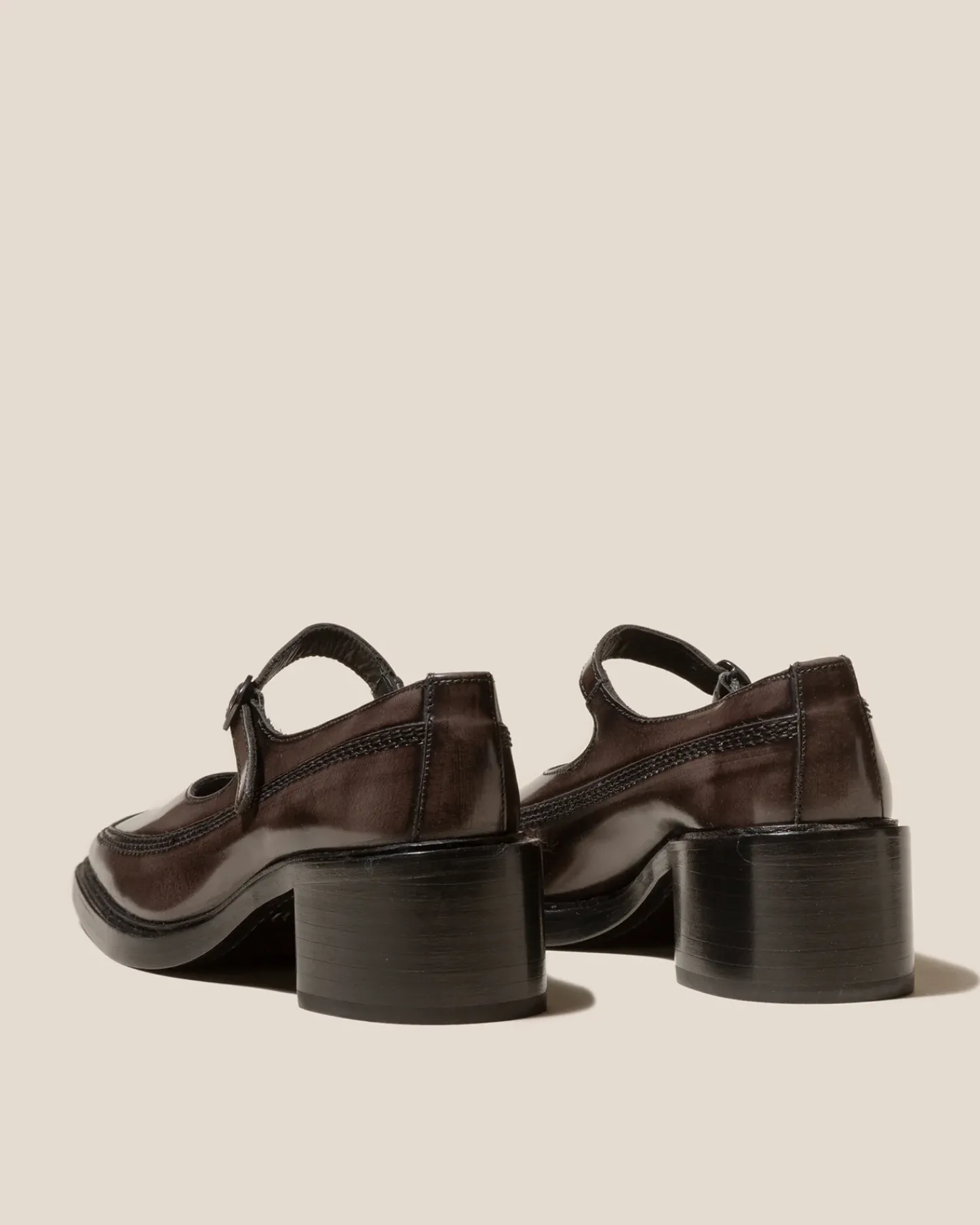 Mary Jane heeled loafer crafted in Spanish brushed leather.