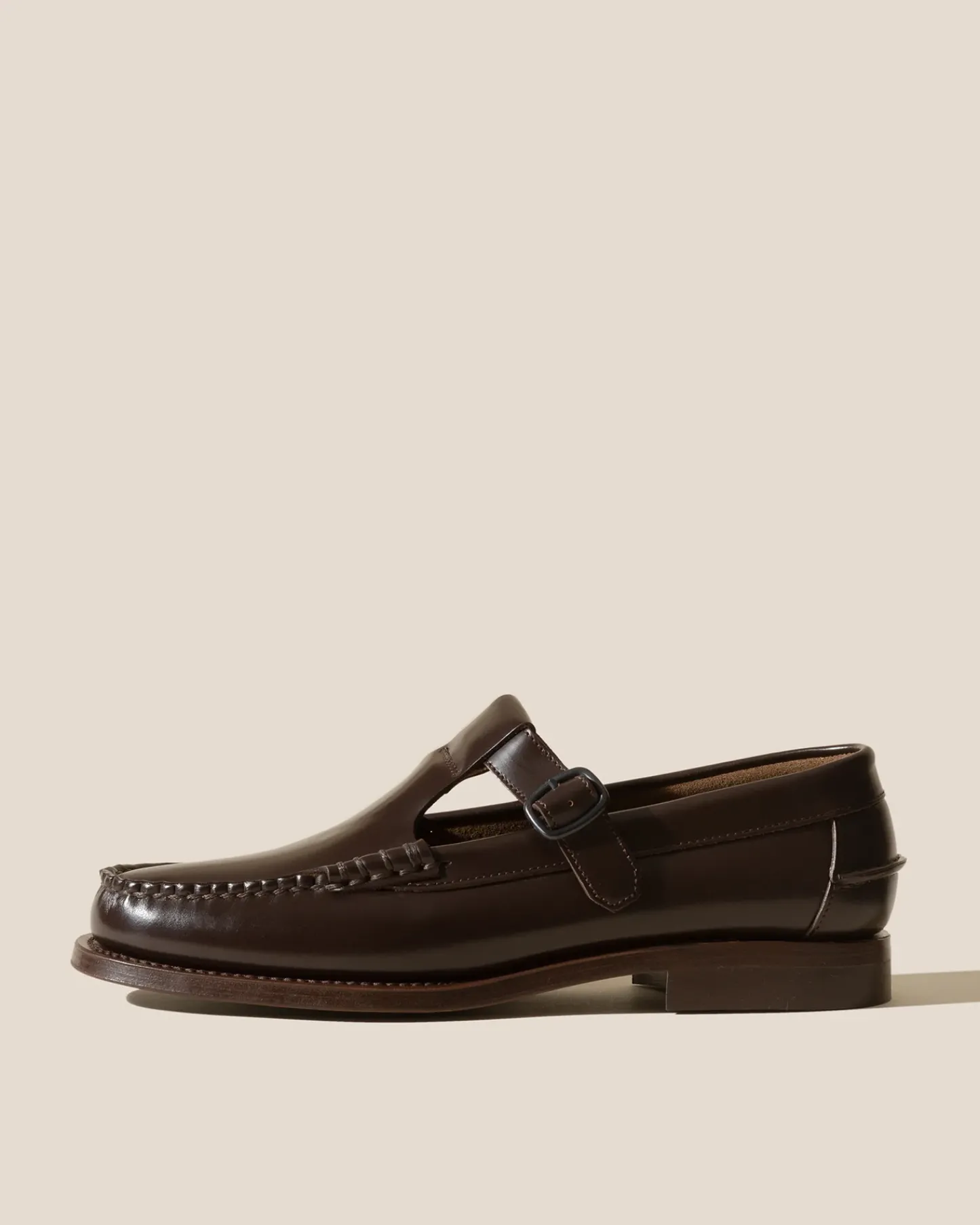 T-bar loafer crafted in Spanish calf leather. Hand-sewn using the traditional moccasin construction. The outsole is stitched to the upper for extra flexibility and durability.