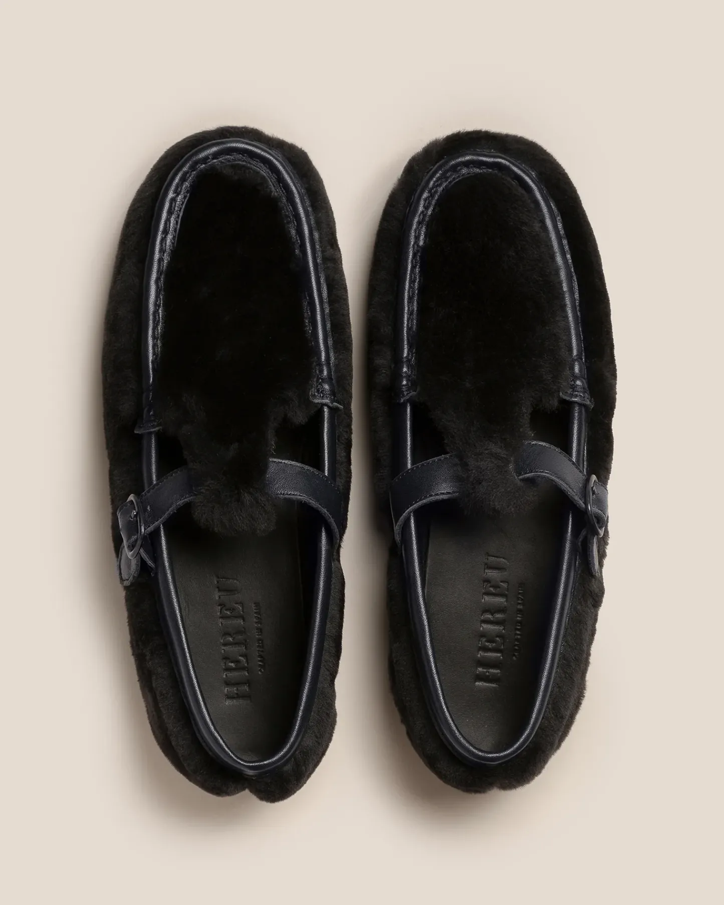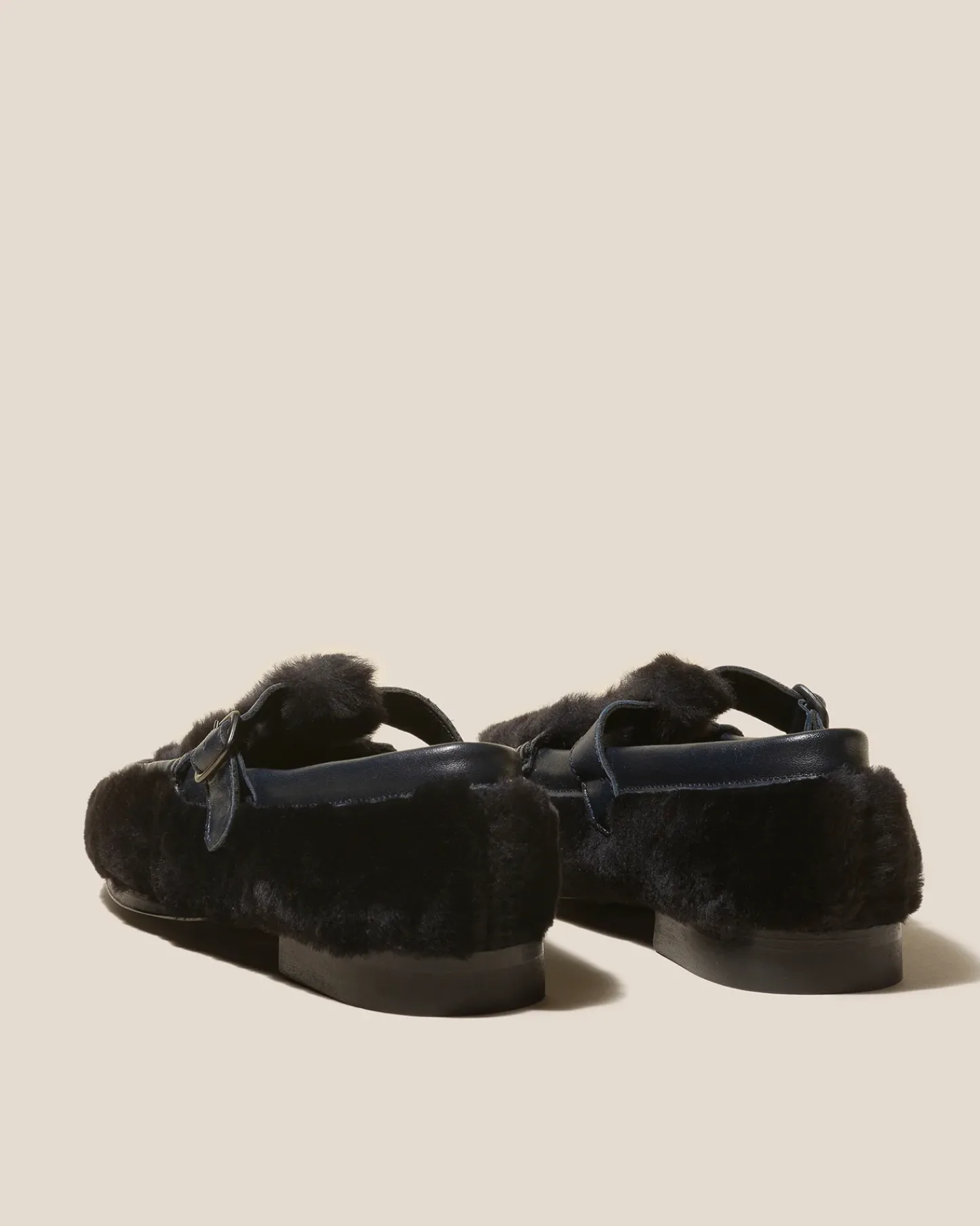 T-bar loafer crafted in light shearling with smooth leather trims. Hand-sewn using the traditional moccasin construction.