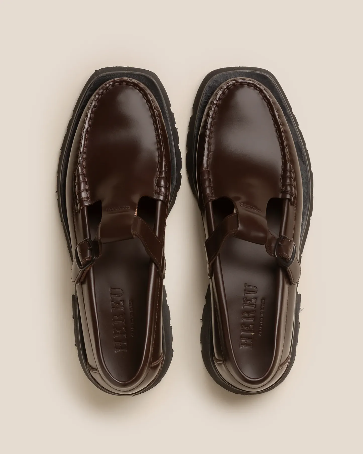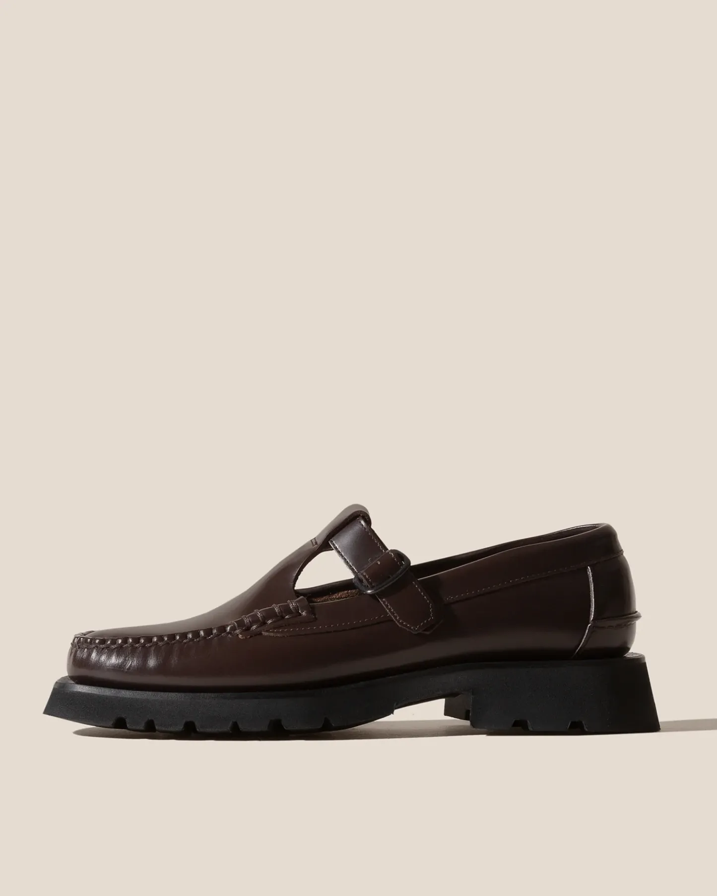T-bar loafer crafted in Spanish calf leather updated with a blown rubber tread sole. Hand-sewn using the traditional moccasin construction.