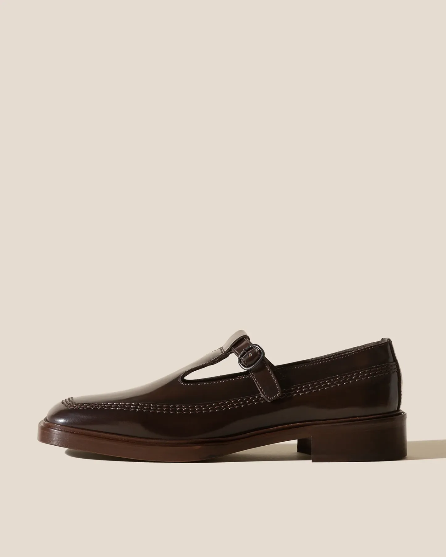 T-Bar shoe crafted in polished structured calf leather.