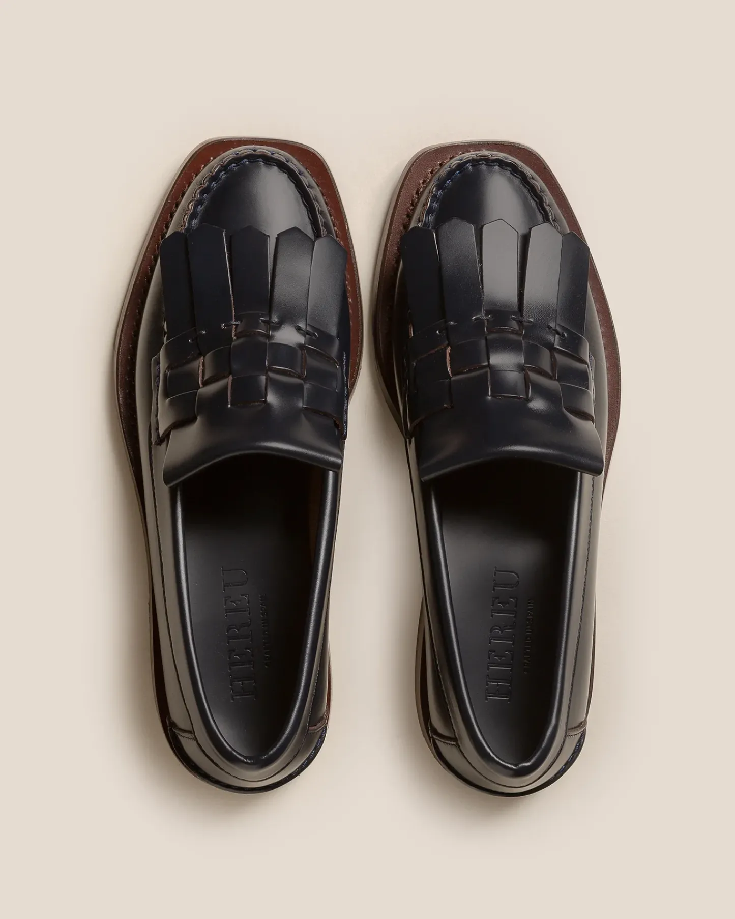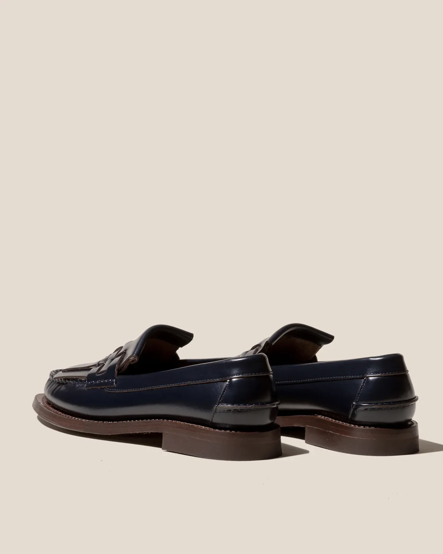 Slip-on loafer with interwoven fringes front detail crafted in structured calf.
