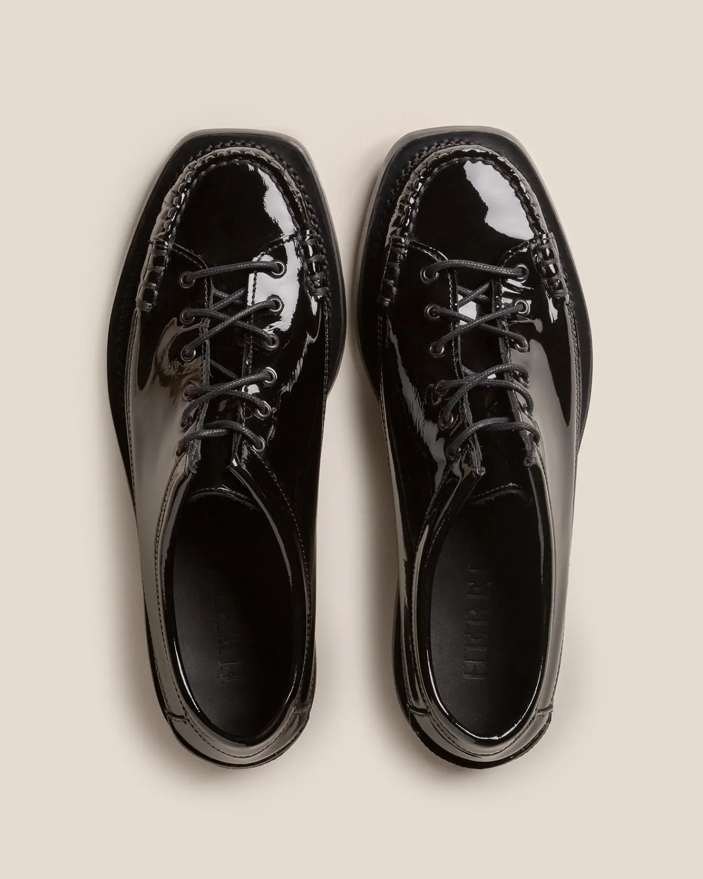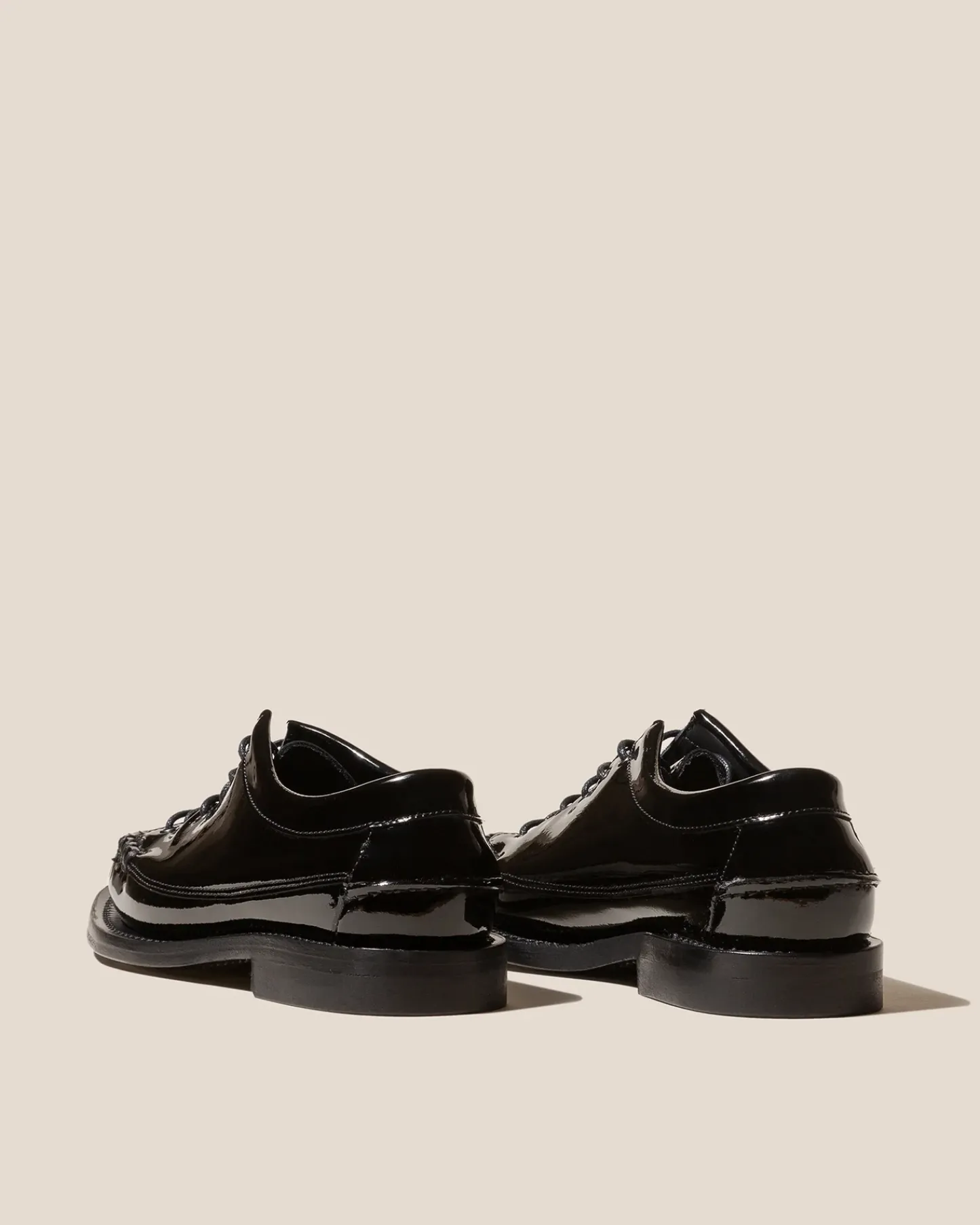 Lace-to-toe loafer crafted in glossy calf leather. The upper has been hand sewn using the traditional moccasin construction. The outsole is stitched to the upper for extra flexibility and durability.