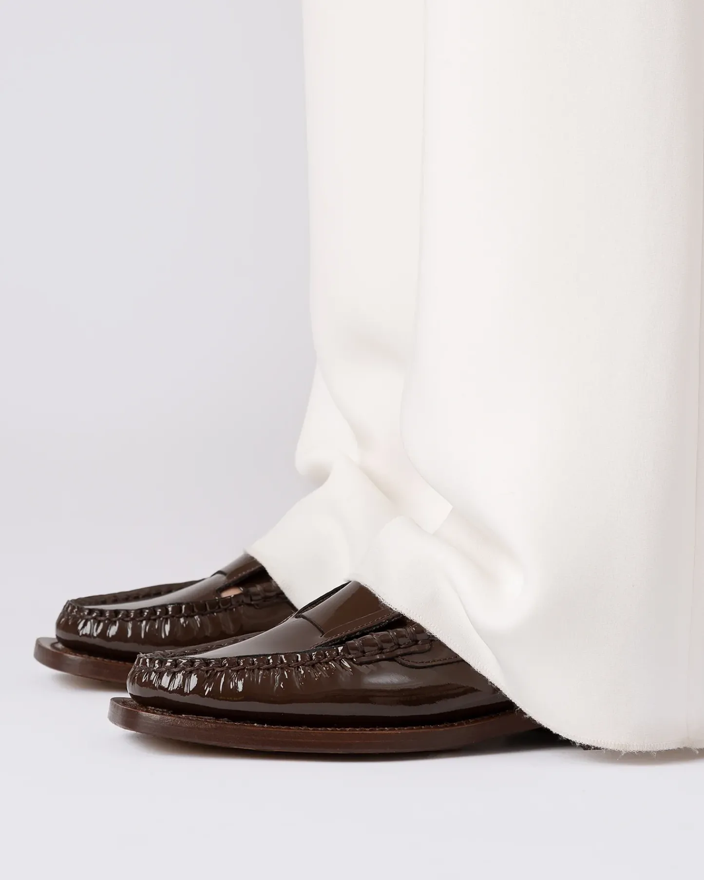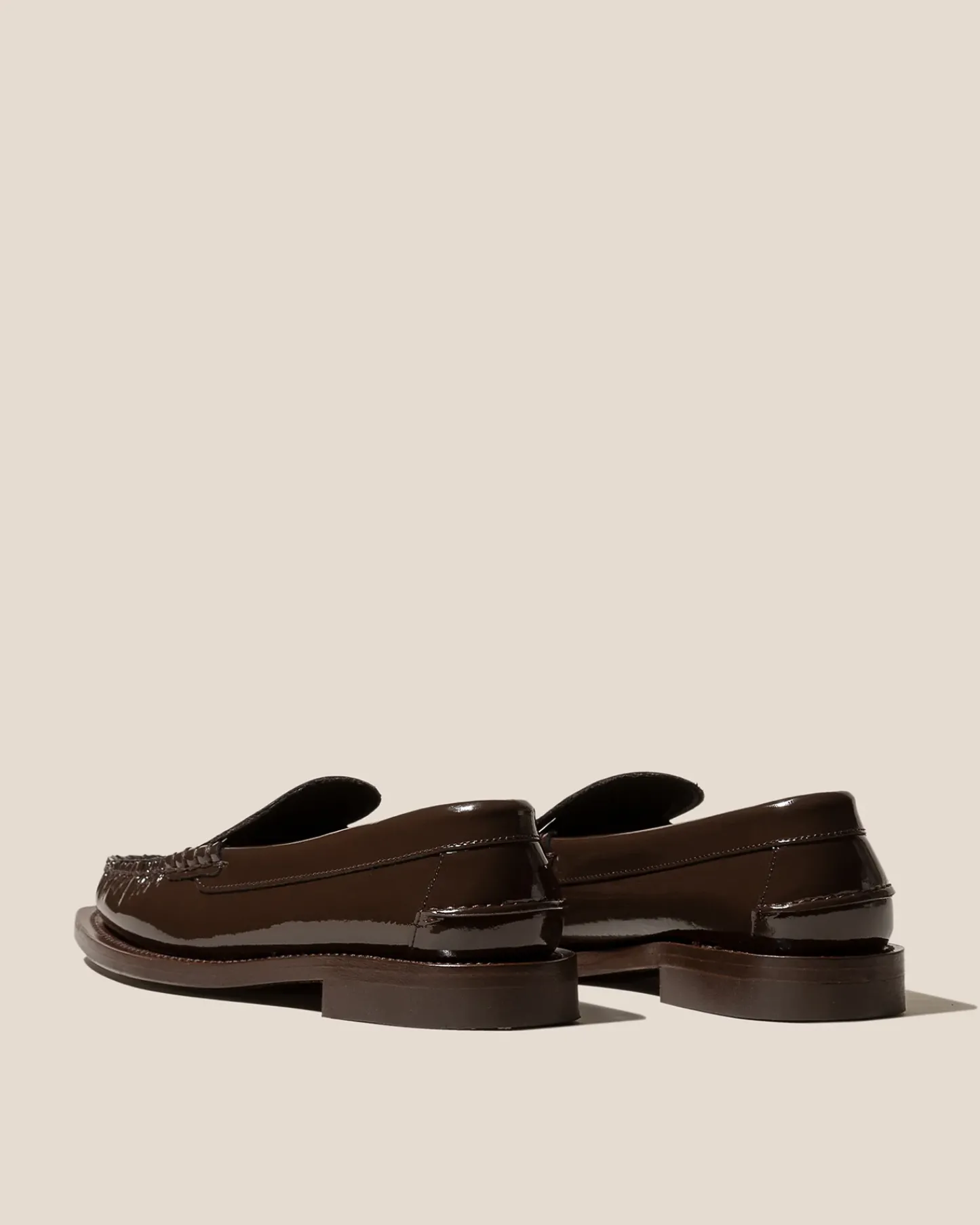 Slip-on loafer with interlaced detail crafted in glossy calf leather.