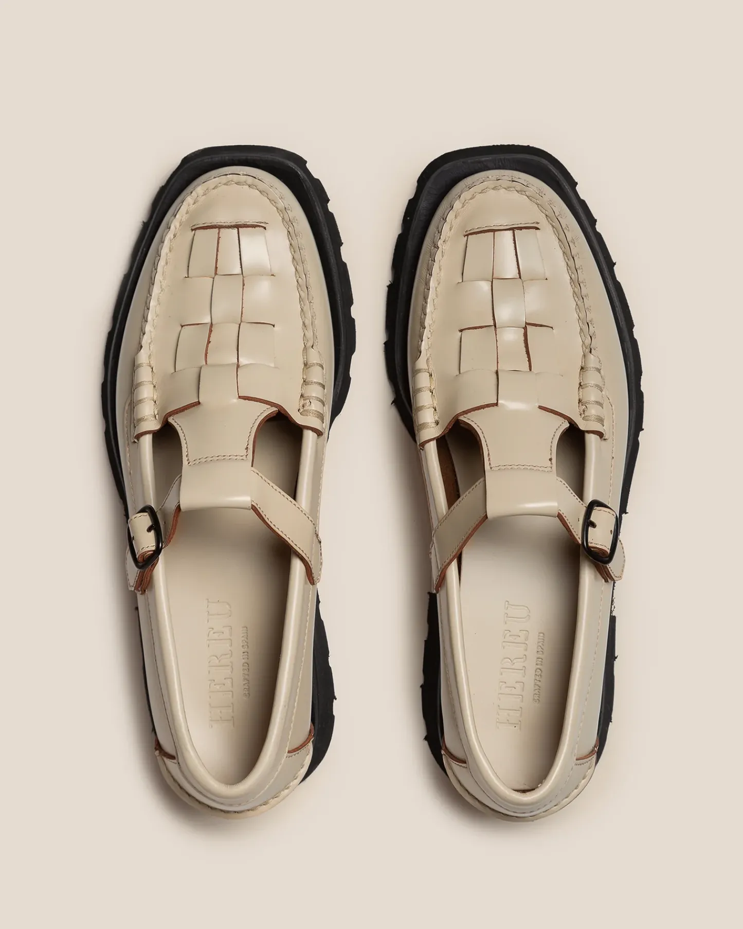 T-bar loafer crafted in Spanish full-grain calf leather updated with a blown rubber tread sole. The upper has been hand-sewn using the traditional moccasin construction.