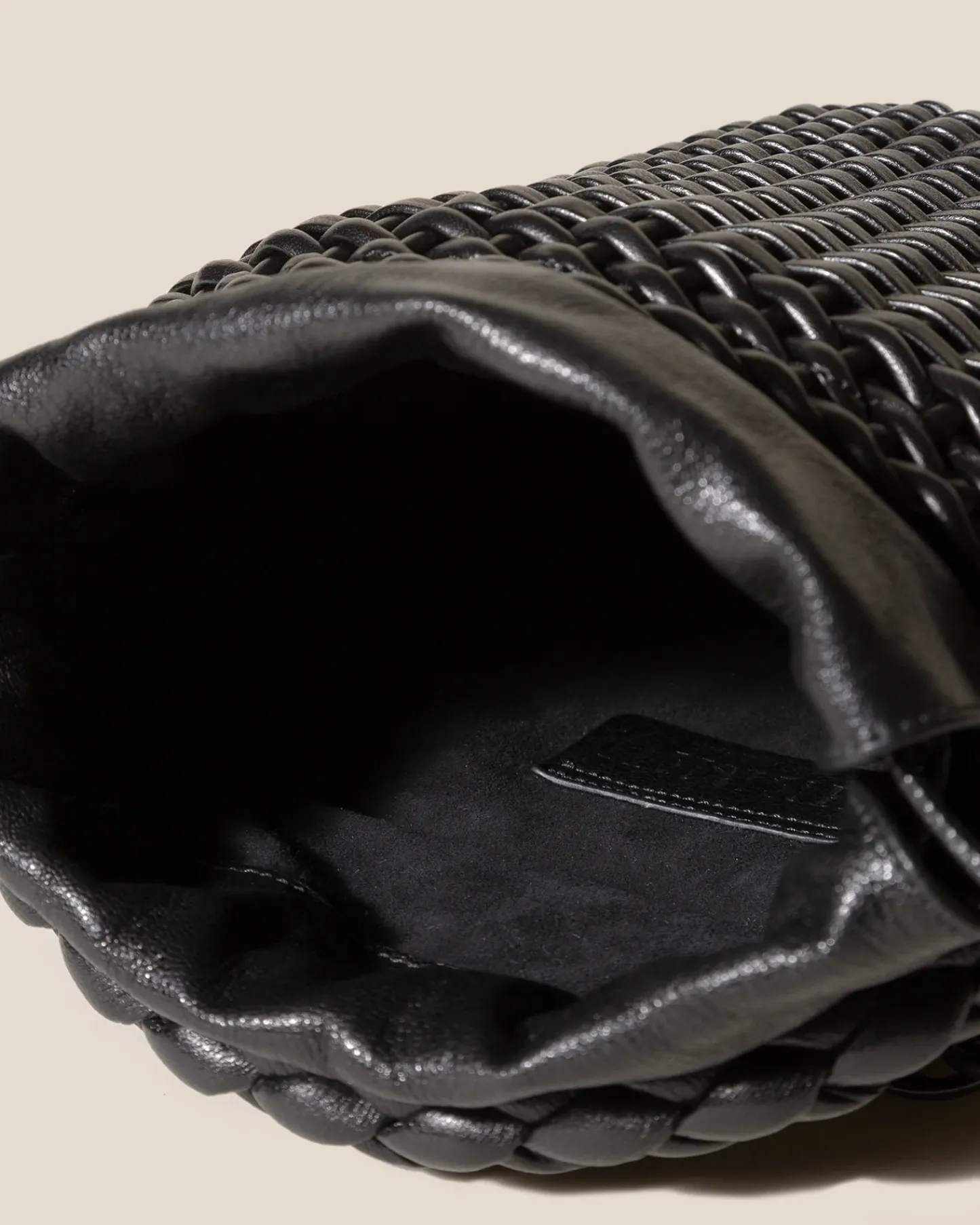 Hand-braided mini tote bag crafted in supple shiny lambskin.