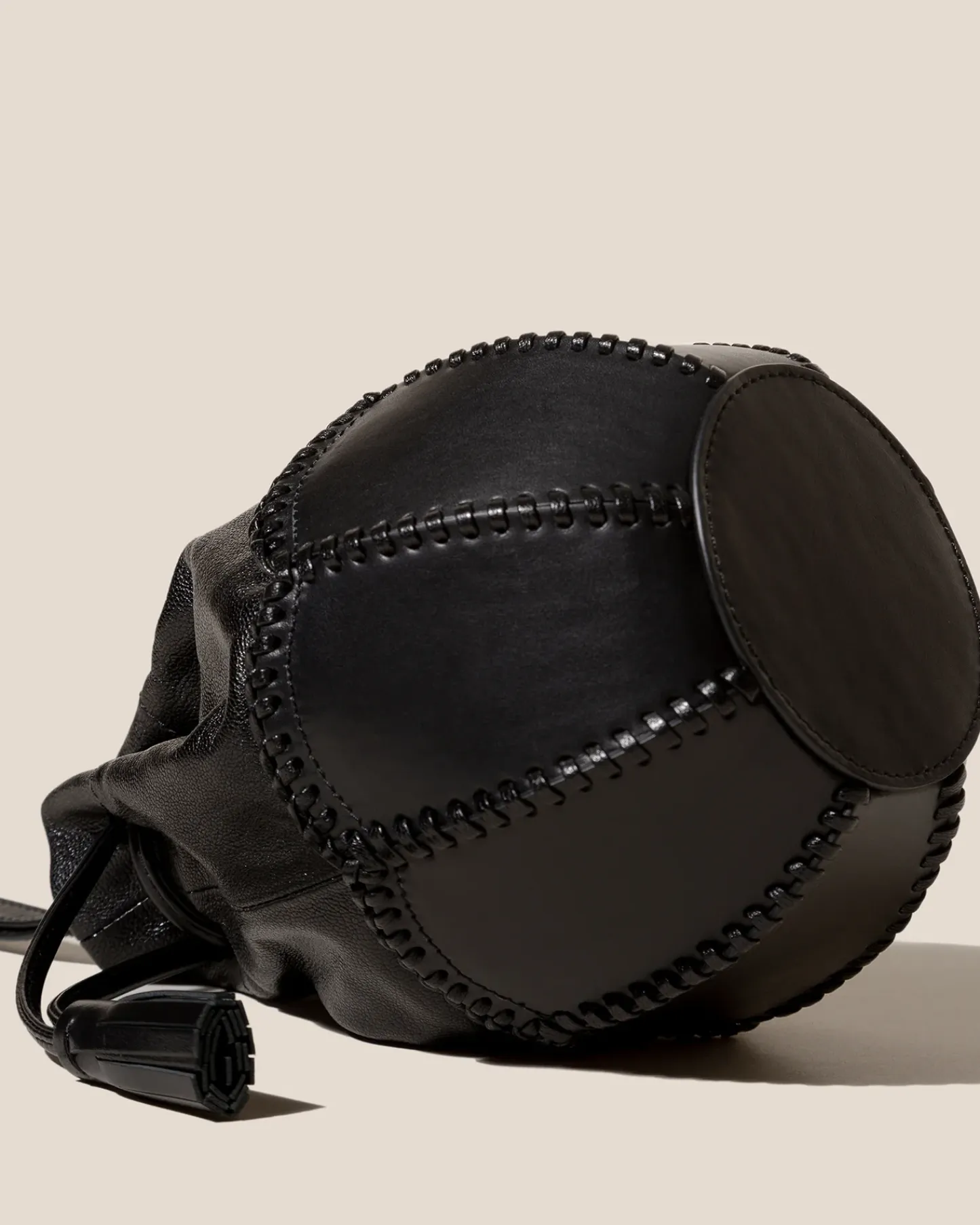 Drawstring pouch with braided seams, crafted in supple shiny lambskin and calf leather.