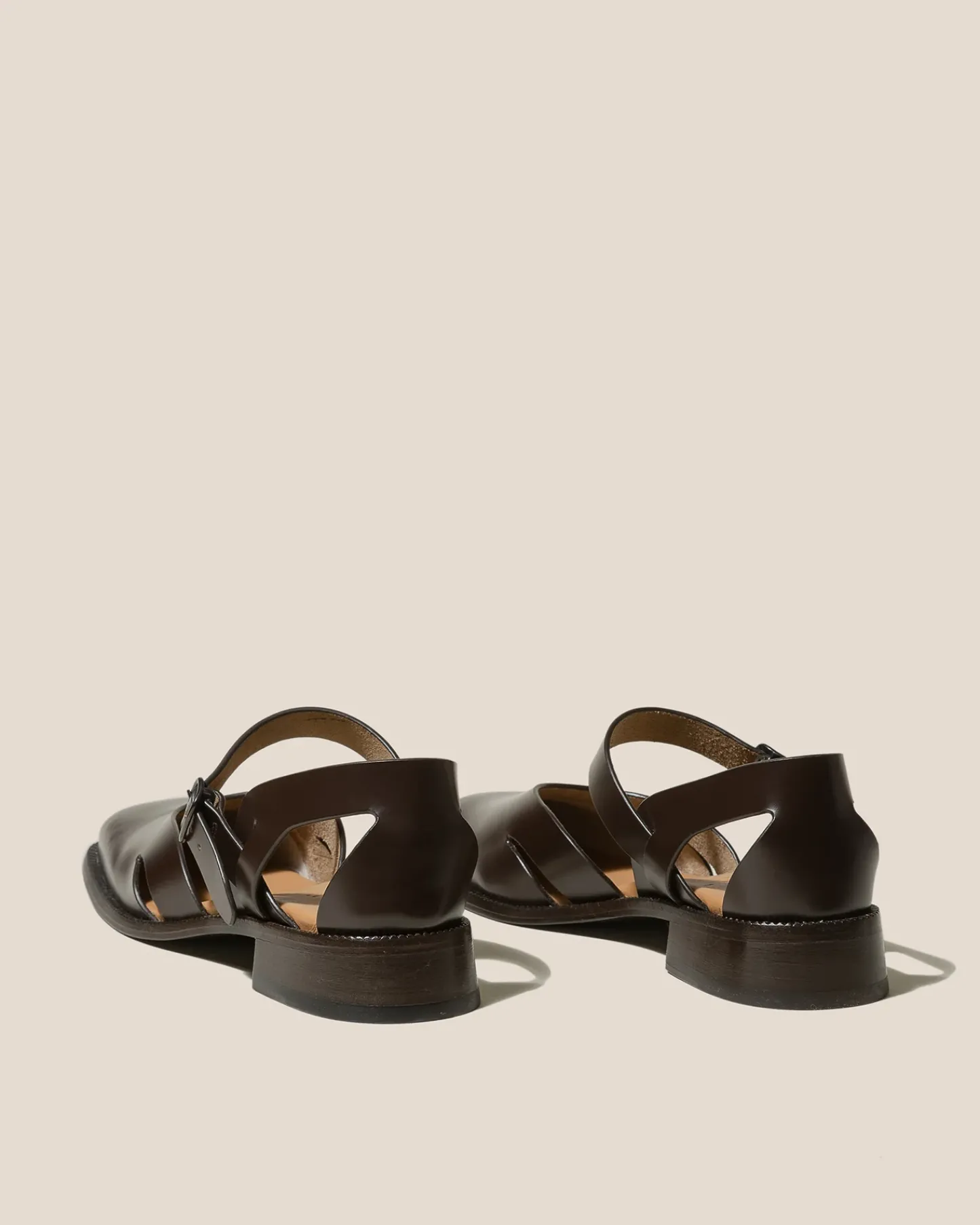 Square-toe two-part shoe with cut.out detail. Crafted in structured leather.