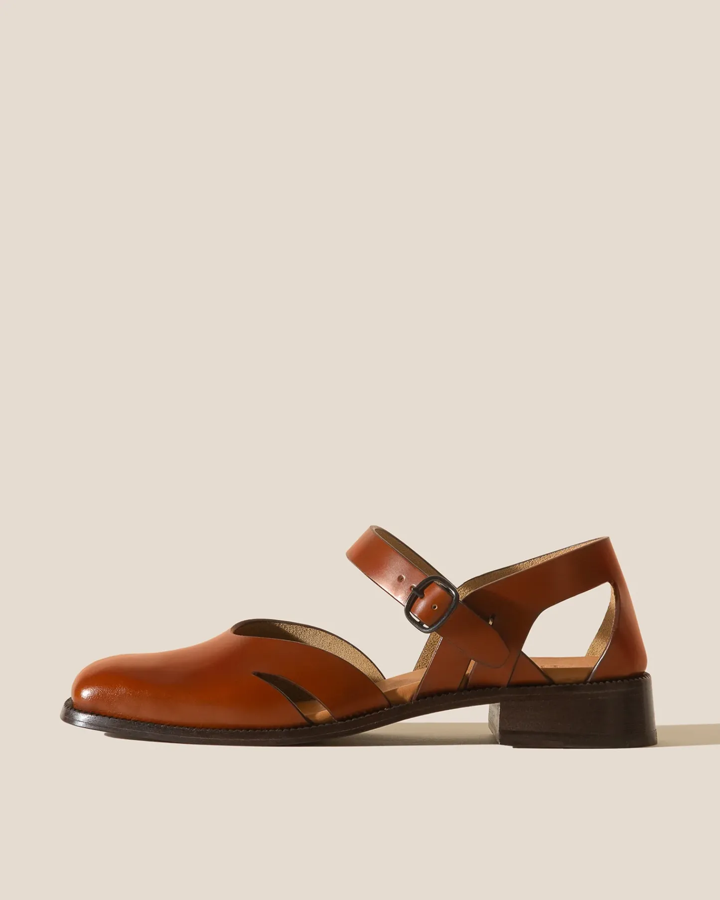 Square-toe two-part shoe with cut out detail. Crafted in structured leather.