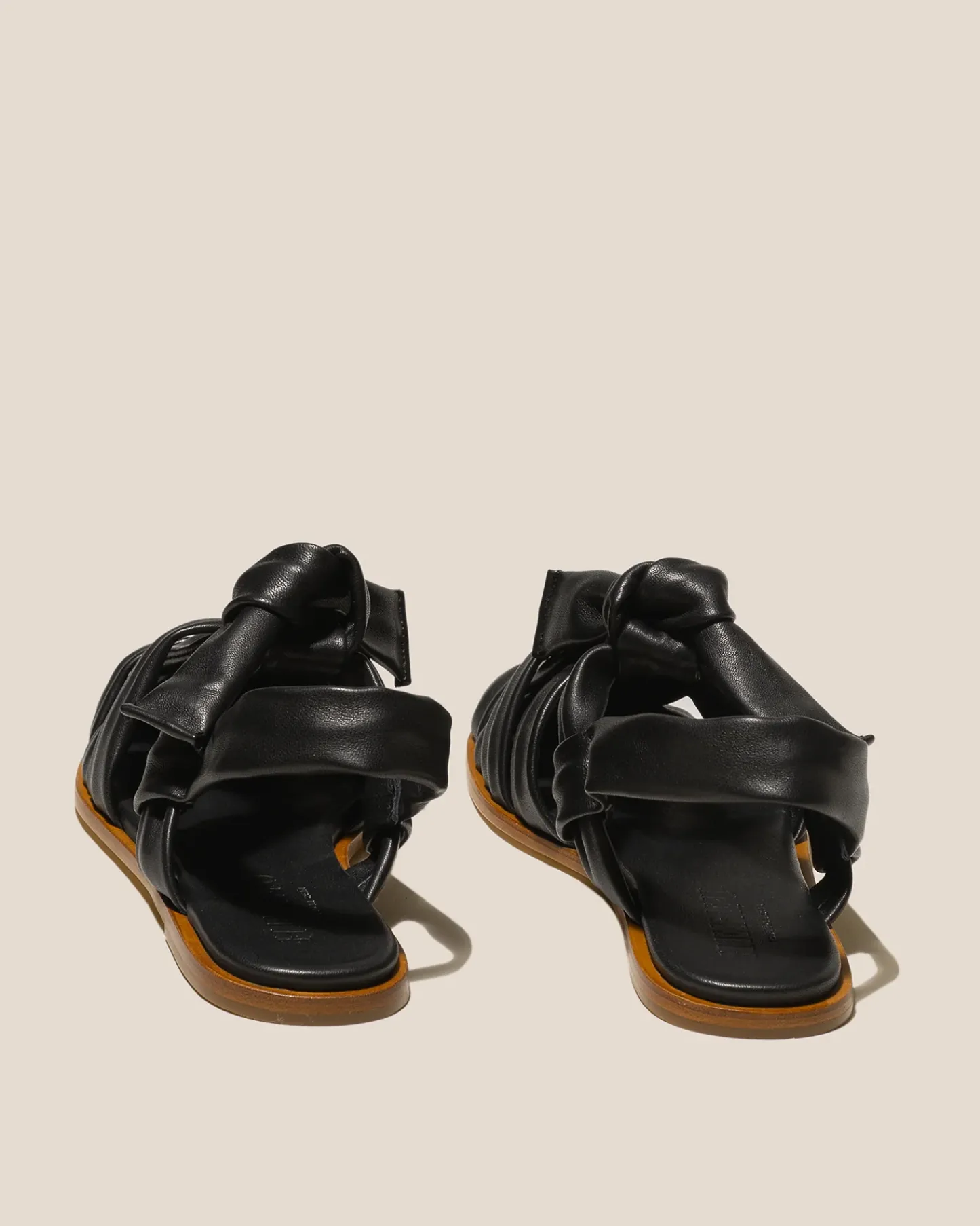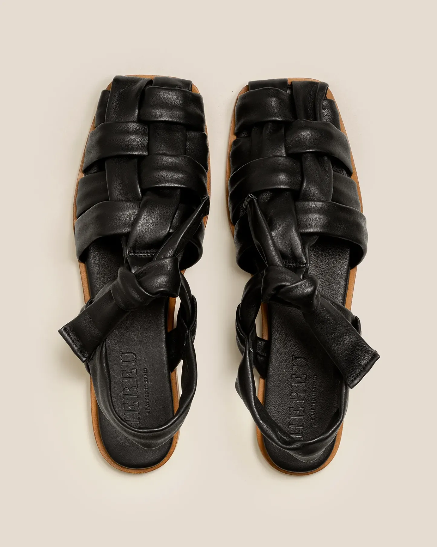 Interwoven knotted t-bar sandal crafted in Italian supple lambskin.