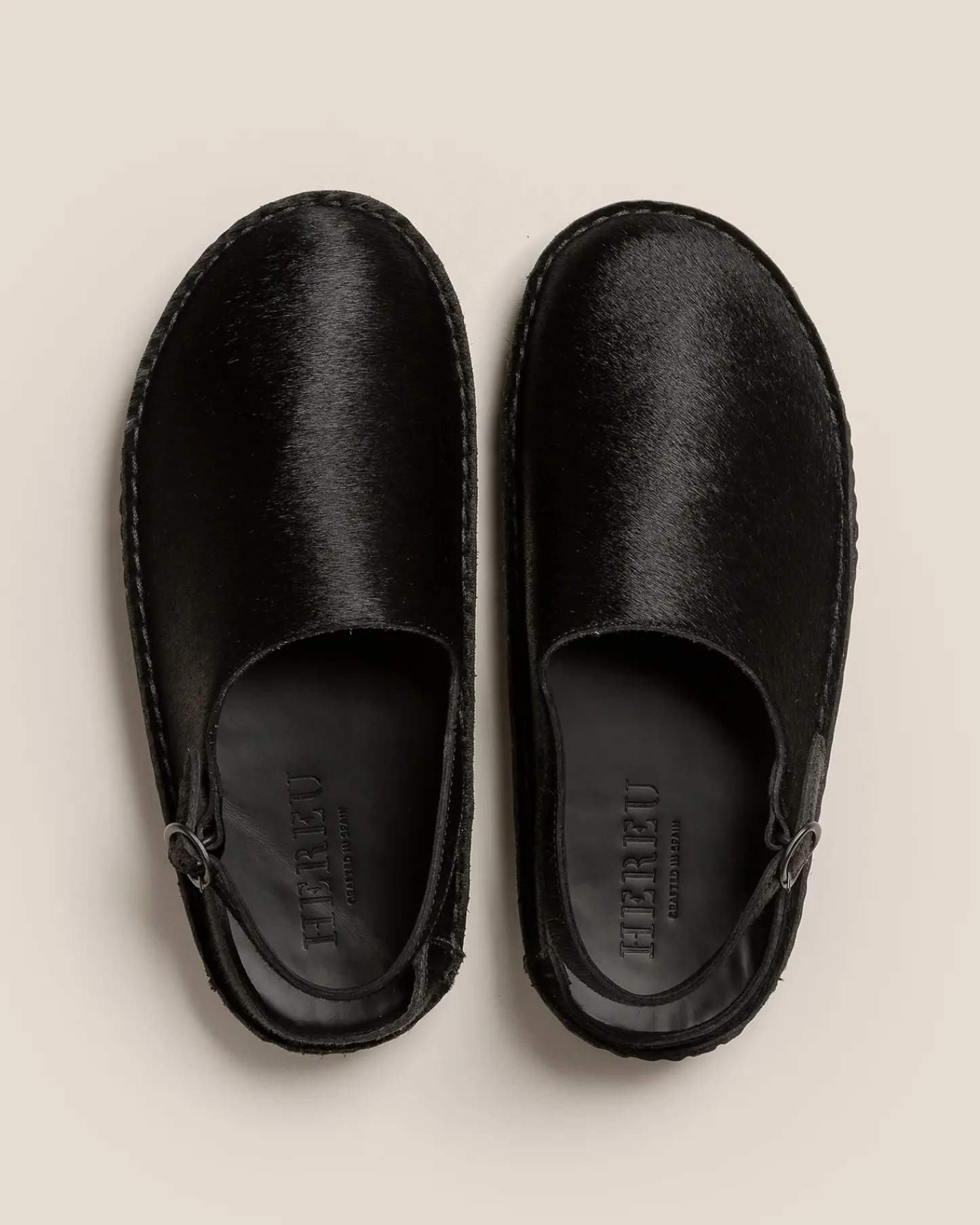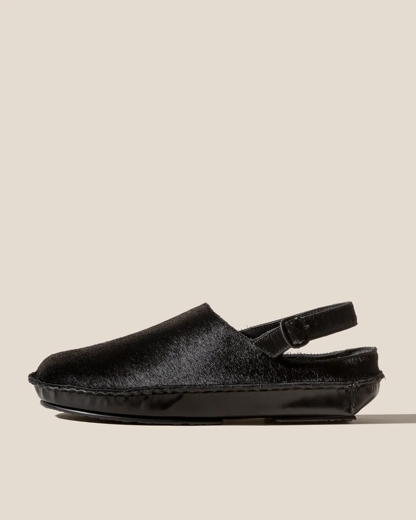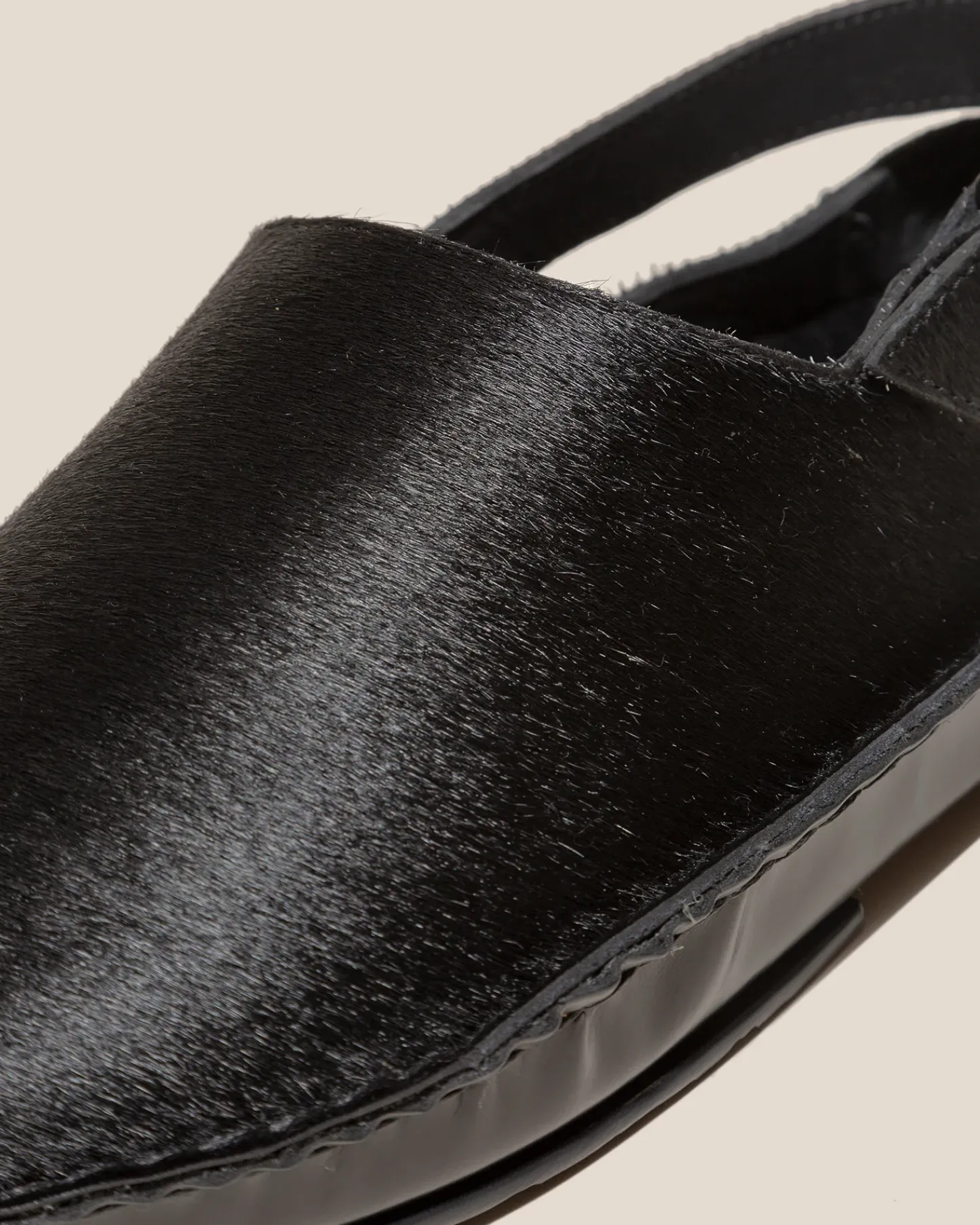 Slingback clog with whipstitch detail, crafted in calf hair and structured calf leather.