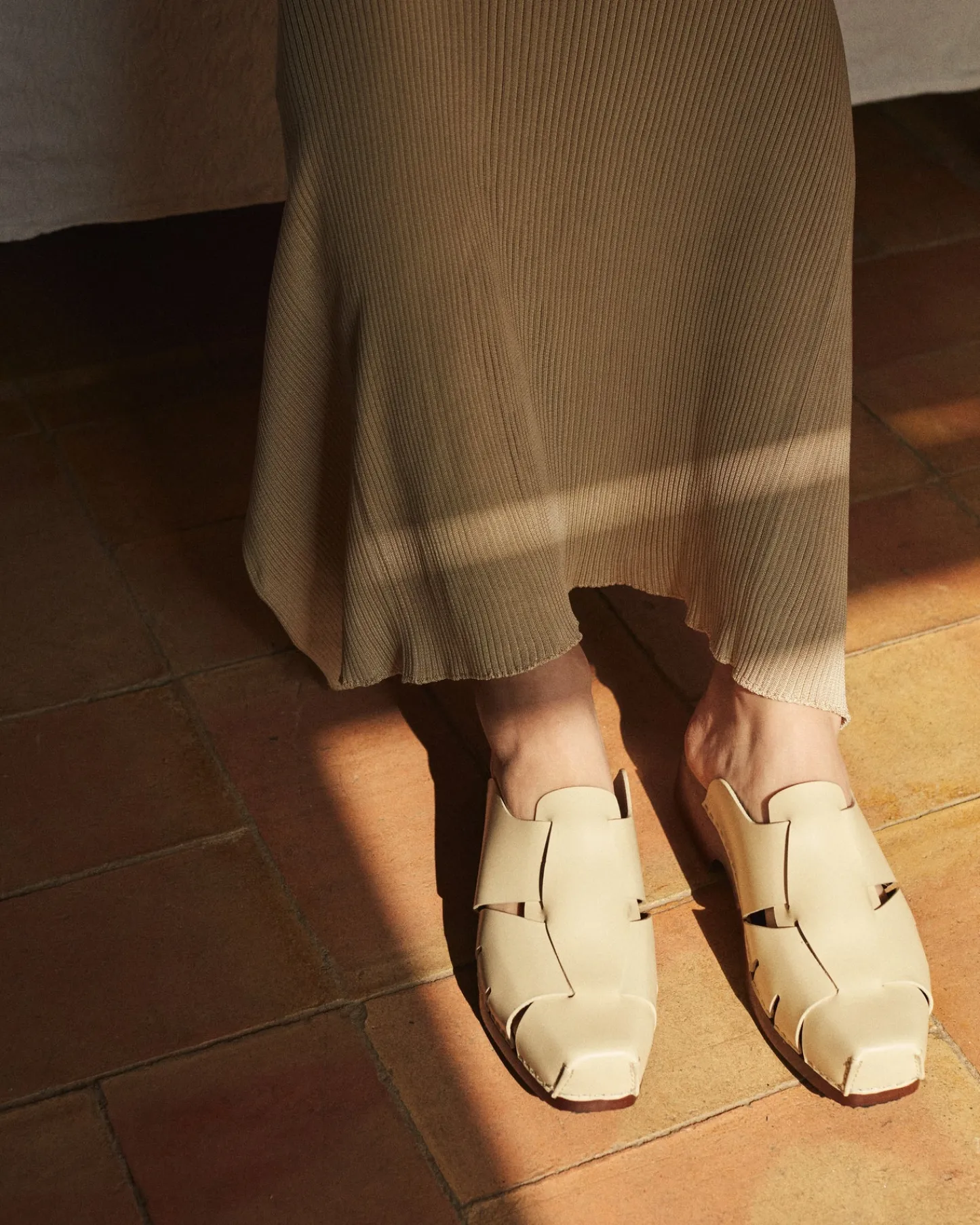 Square toe wooden mule clog with fisherman-sandal details. Crafted in Spanish full-grain leather and hand-carved wooden sole.
