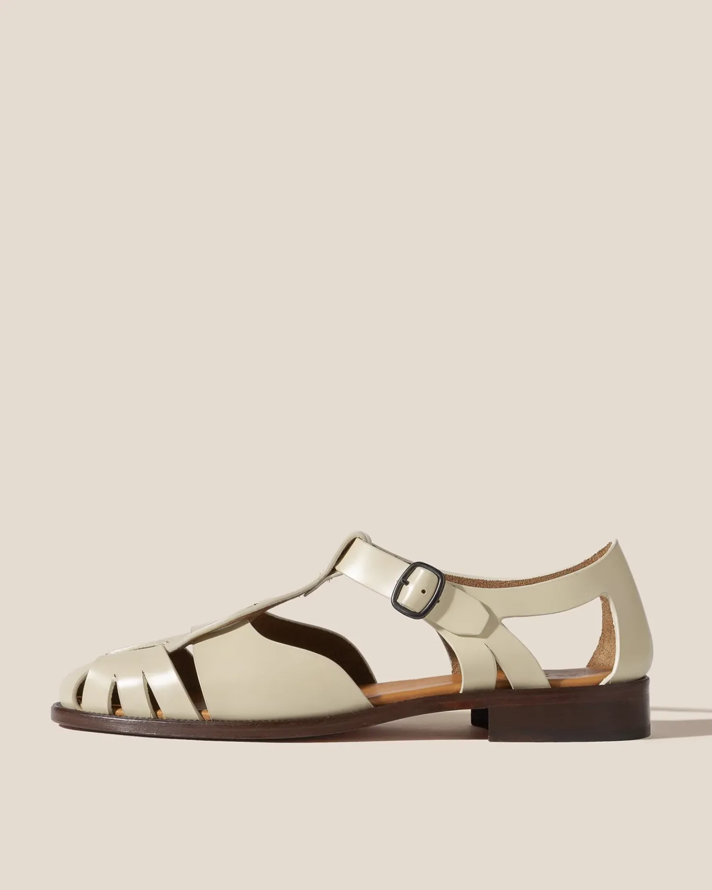 Round-toe fisherman sandal with cut out front detail, crafted in Spanish calf leather.