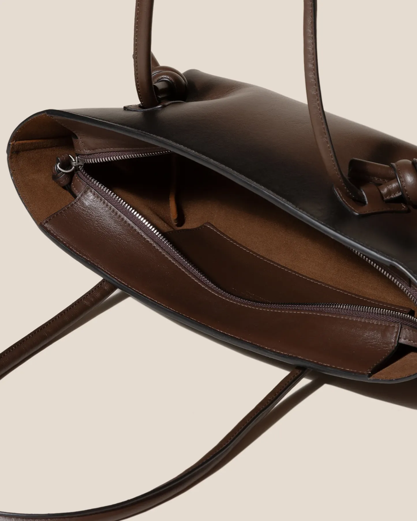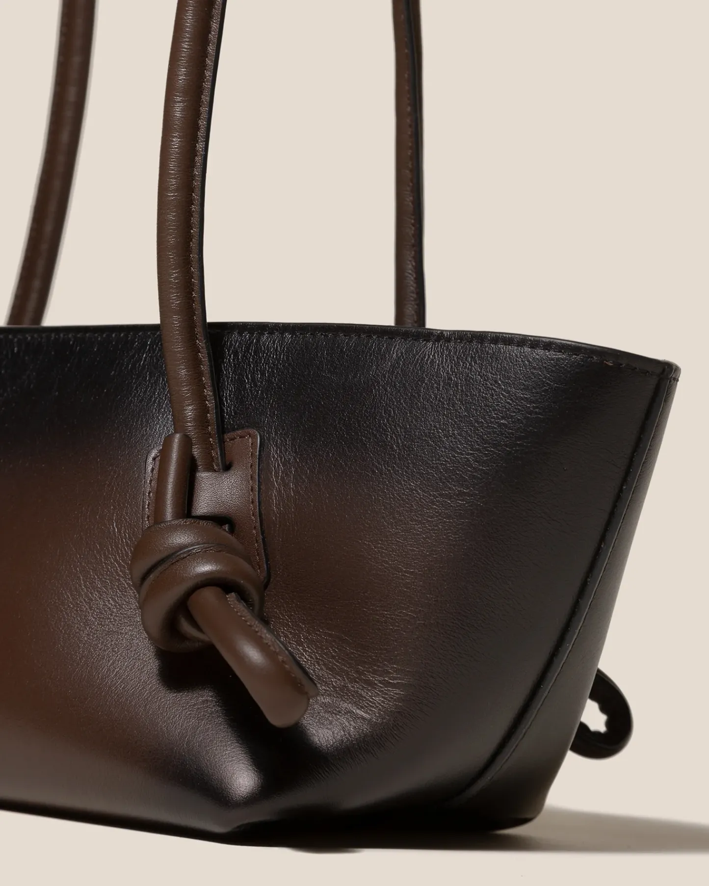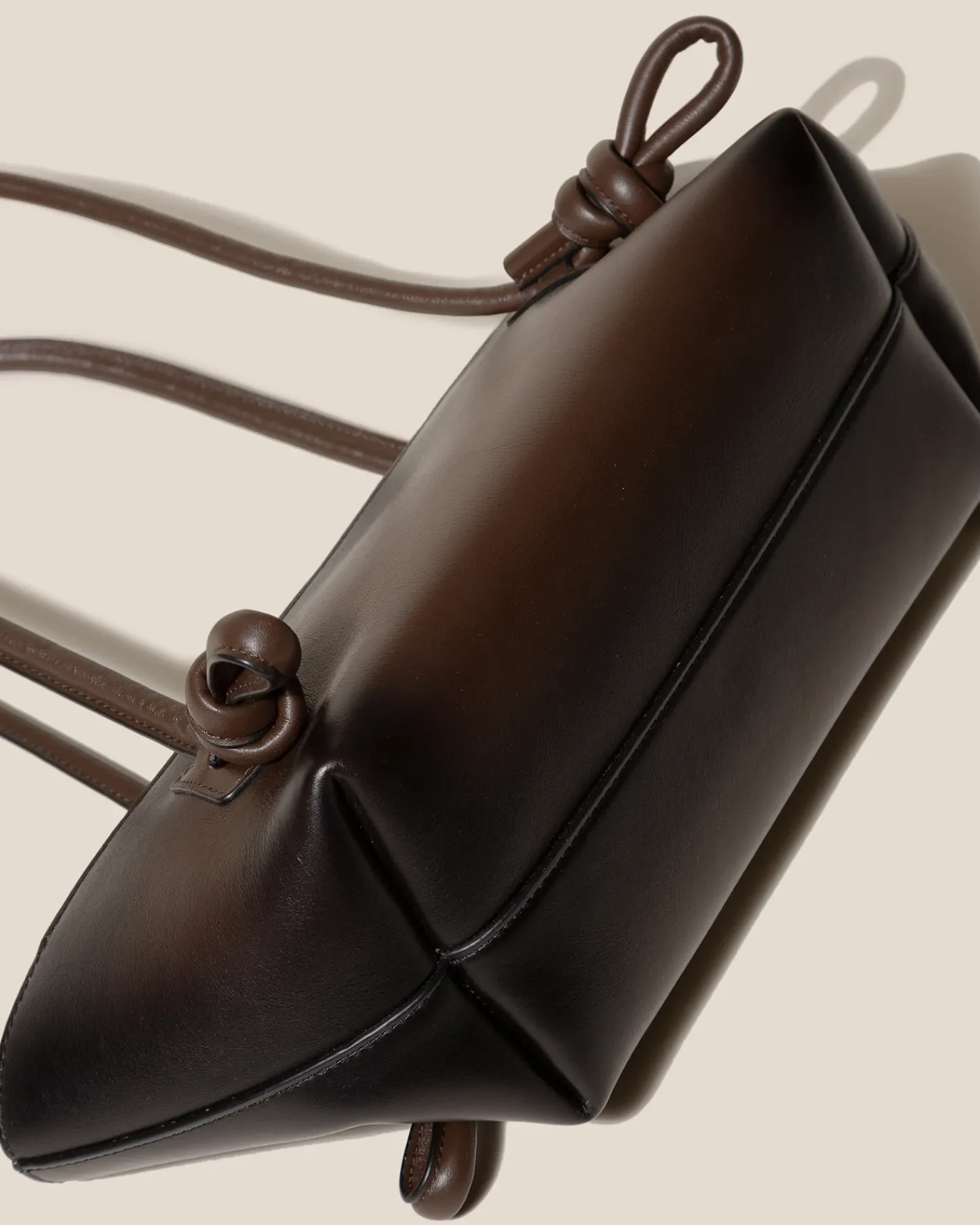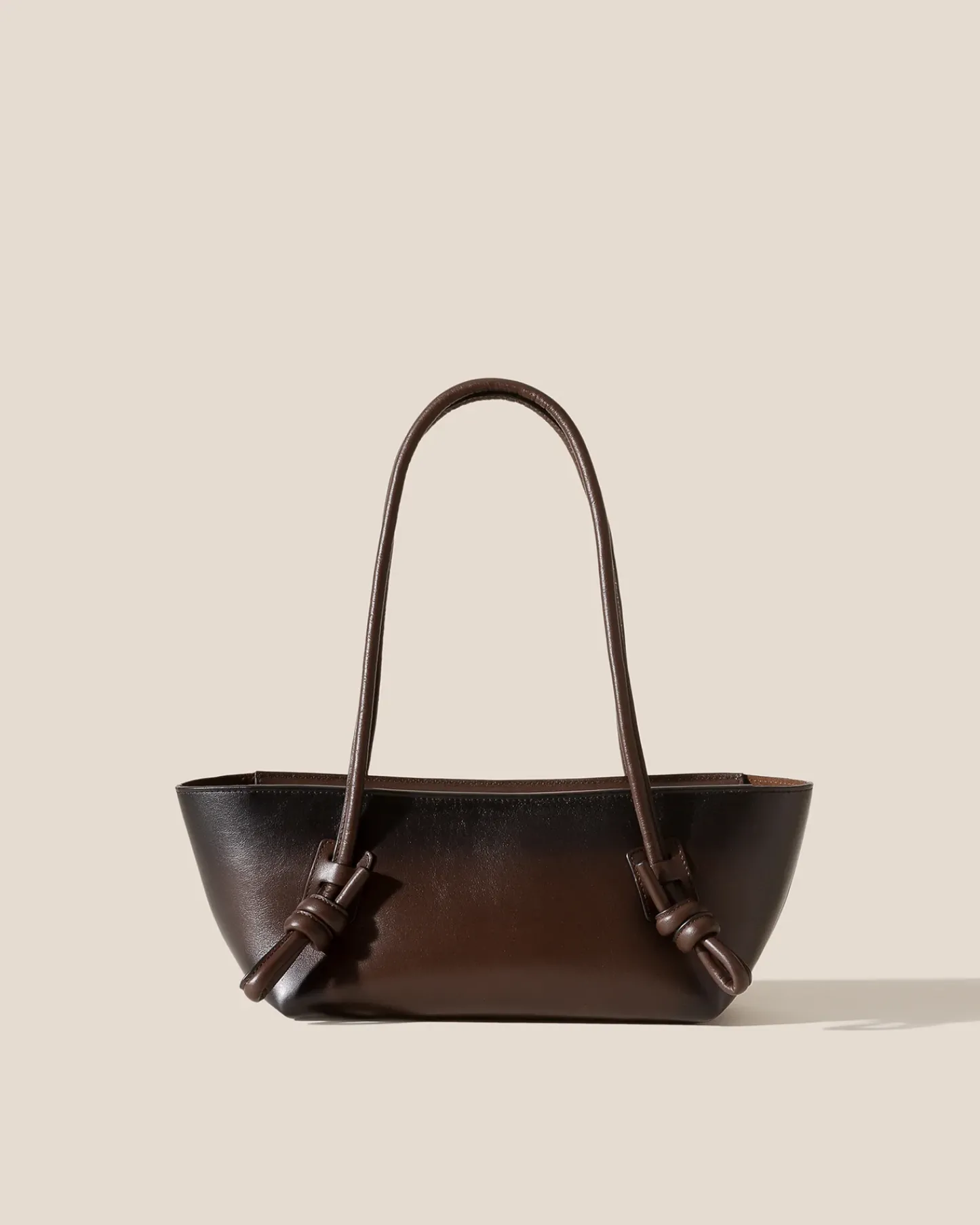 Baguette shoulder bag with knotted handle detail, crafted in sleek calf leather with airbrushed details.