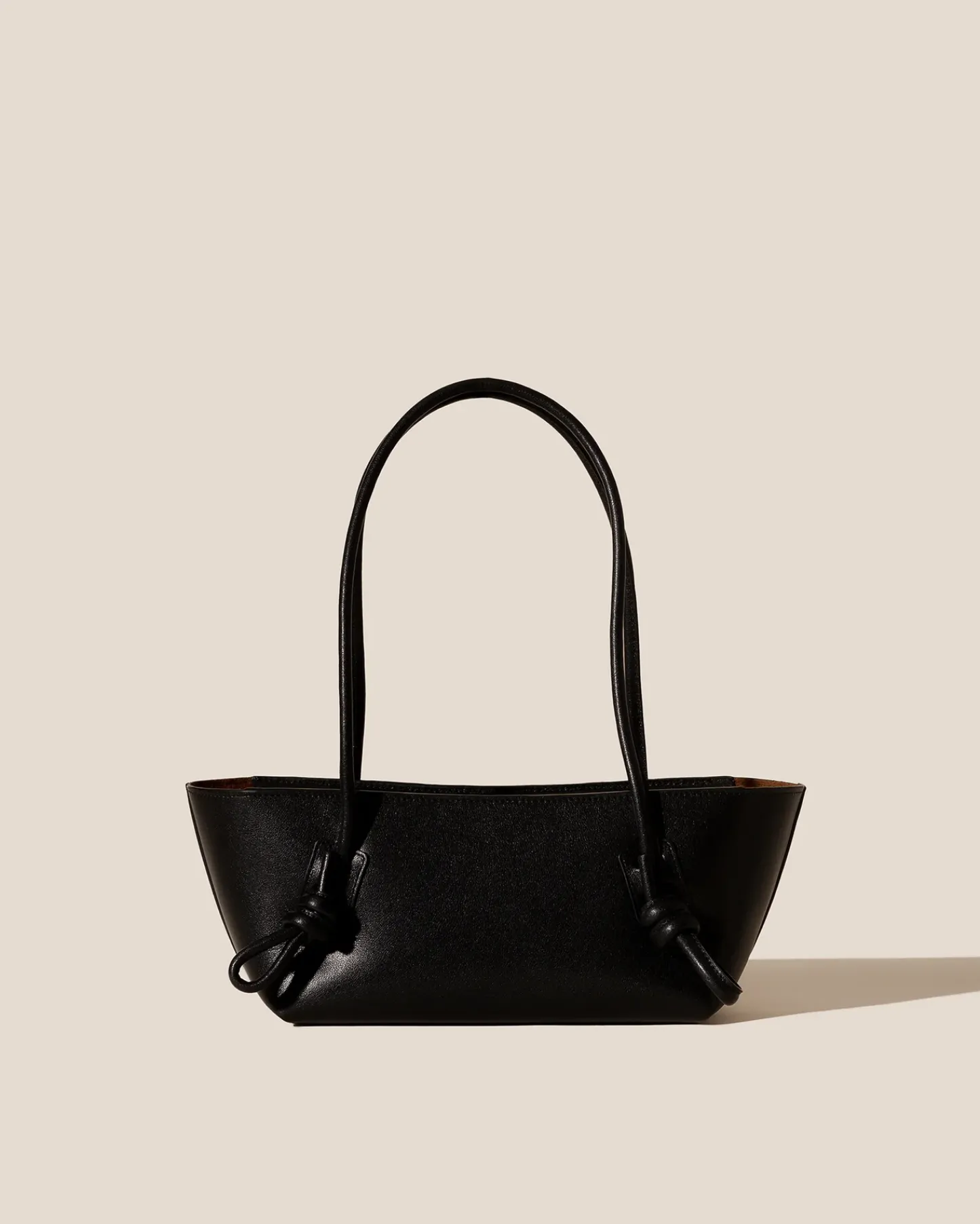 Baguette shoulder bag with knotted handle detail, crafted in polished Italian calf leather and lined with calf suede.