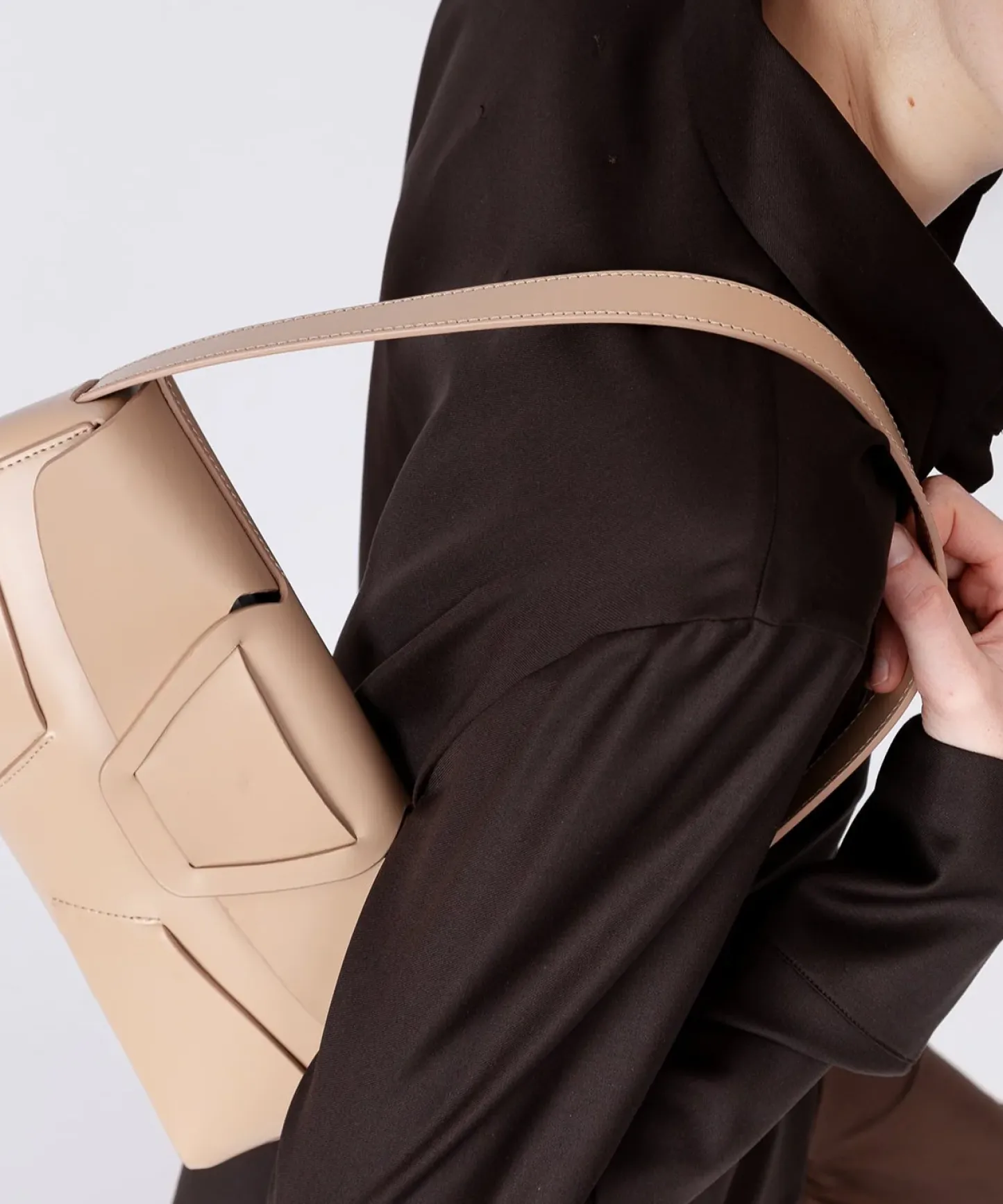 Baguette bag with woven detail in Spanish structured calf leather and lined in calf suede.