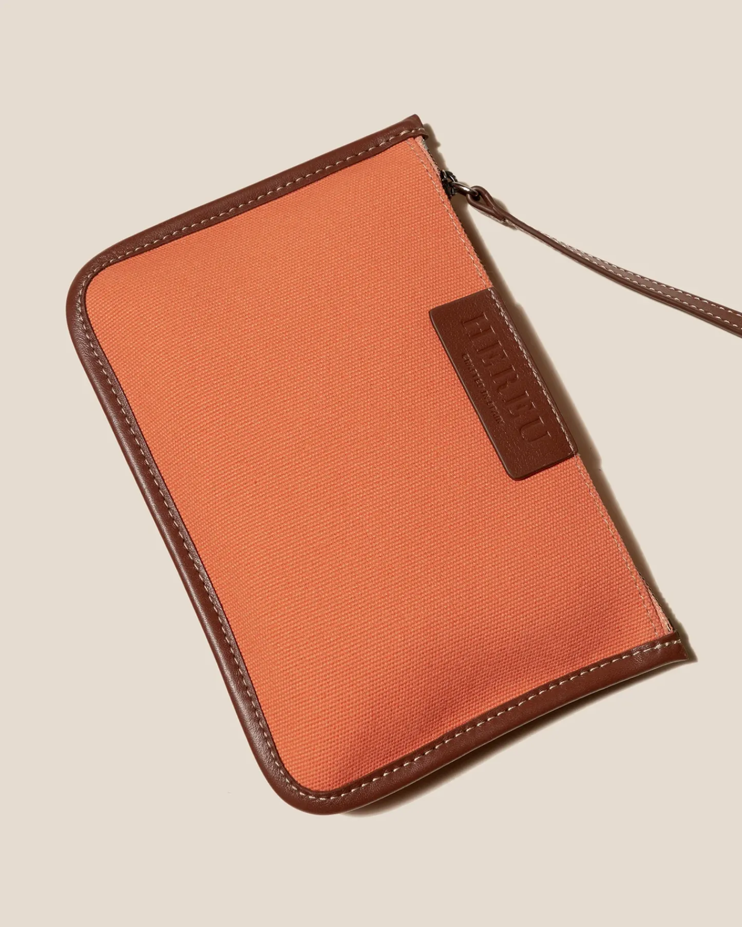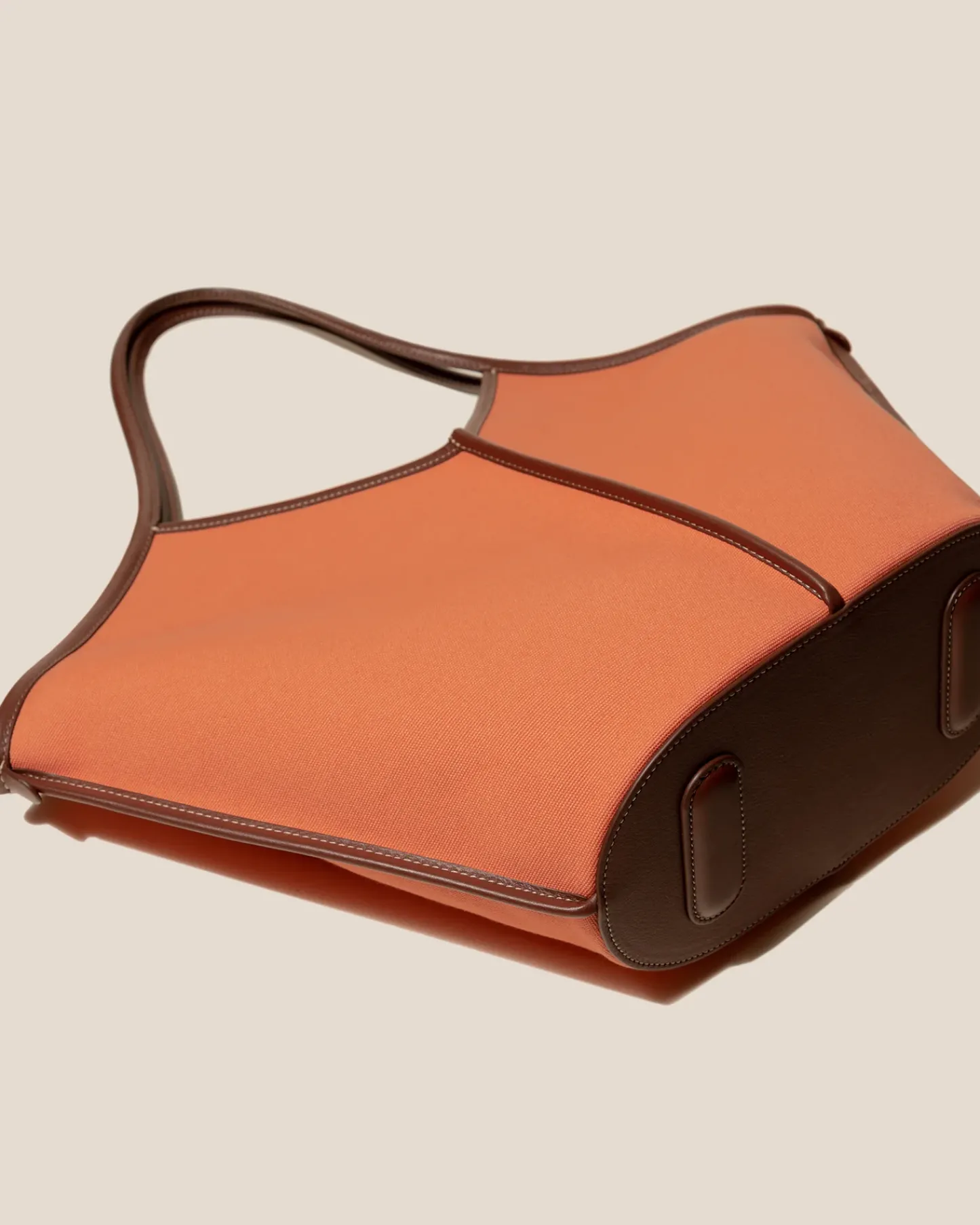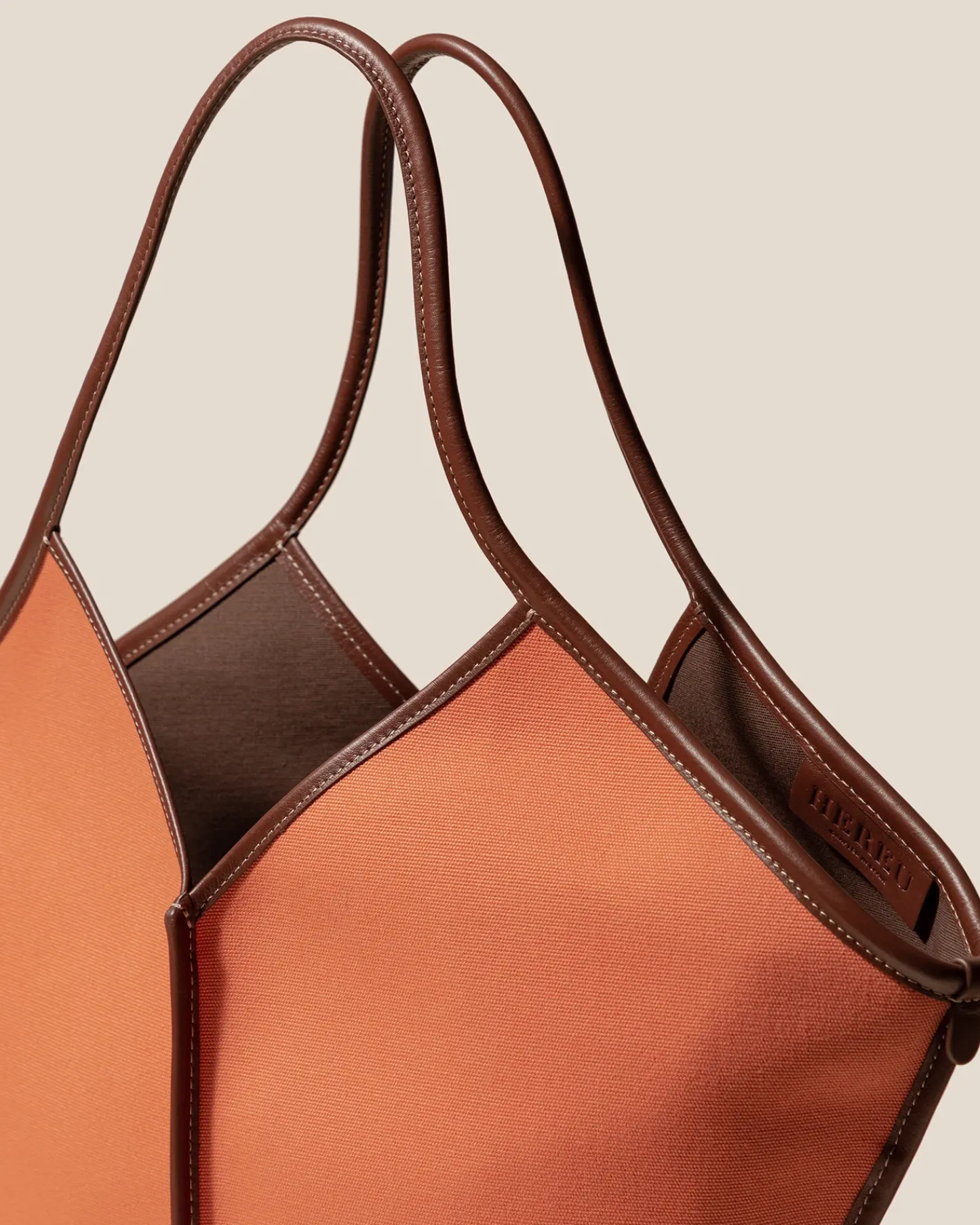 Organic cotton tote bag edged with smooth leather. It has a zipped pouch to secure small essentials and slim top handles that sit over the shoulder.