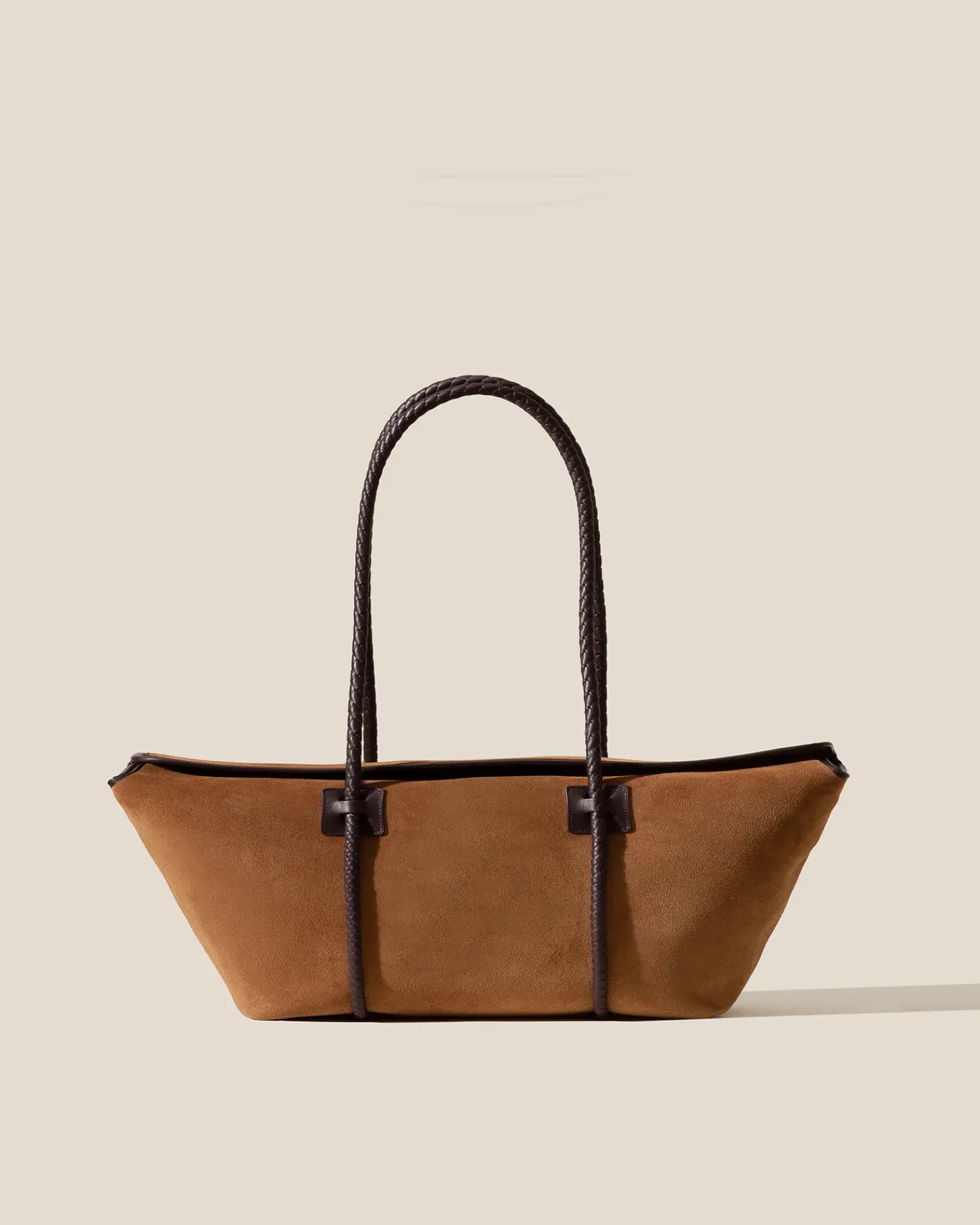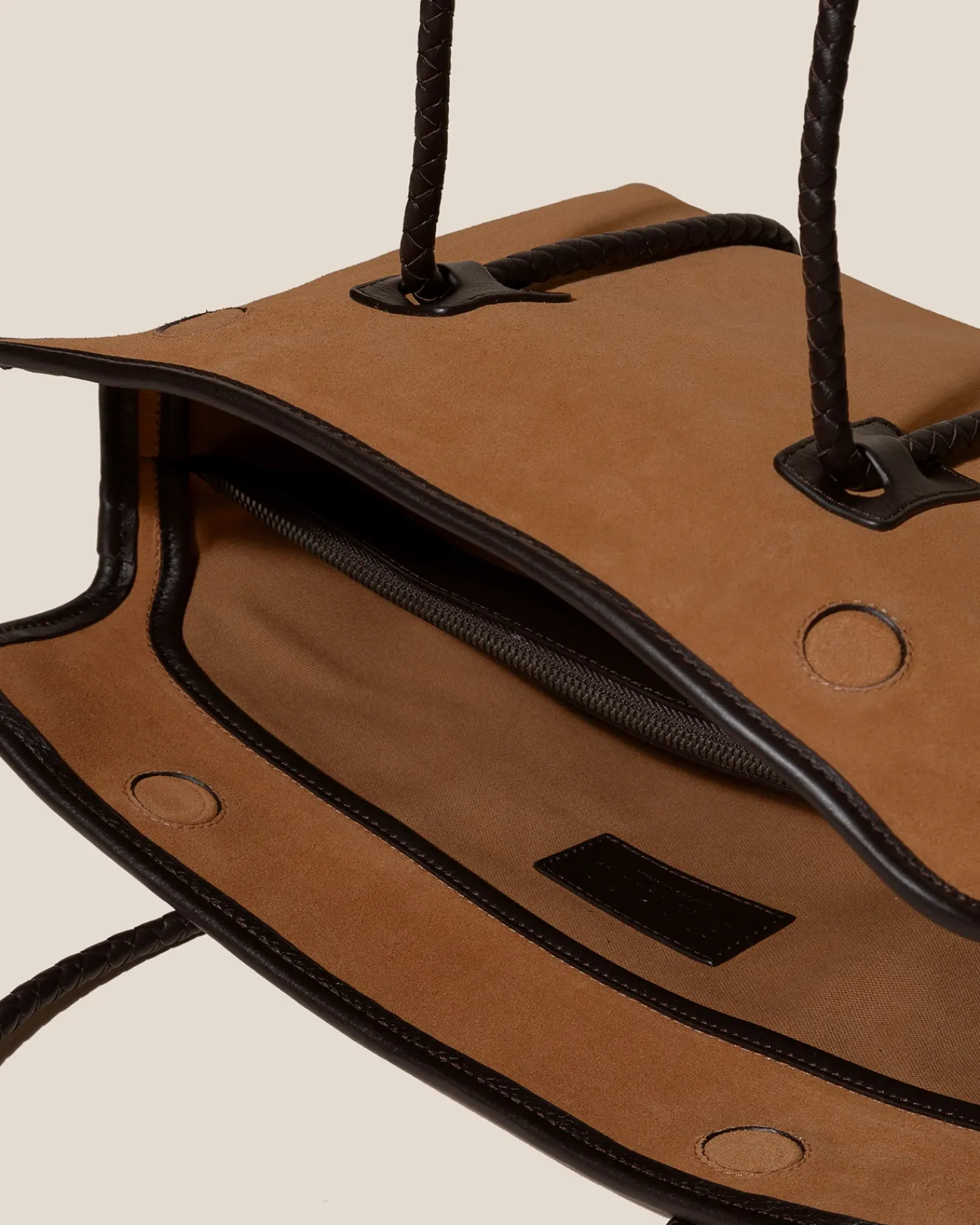 Leather framed tote crafted in calf suede and smooth soft calf leather.