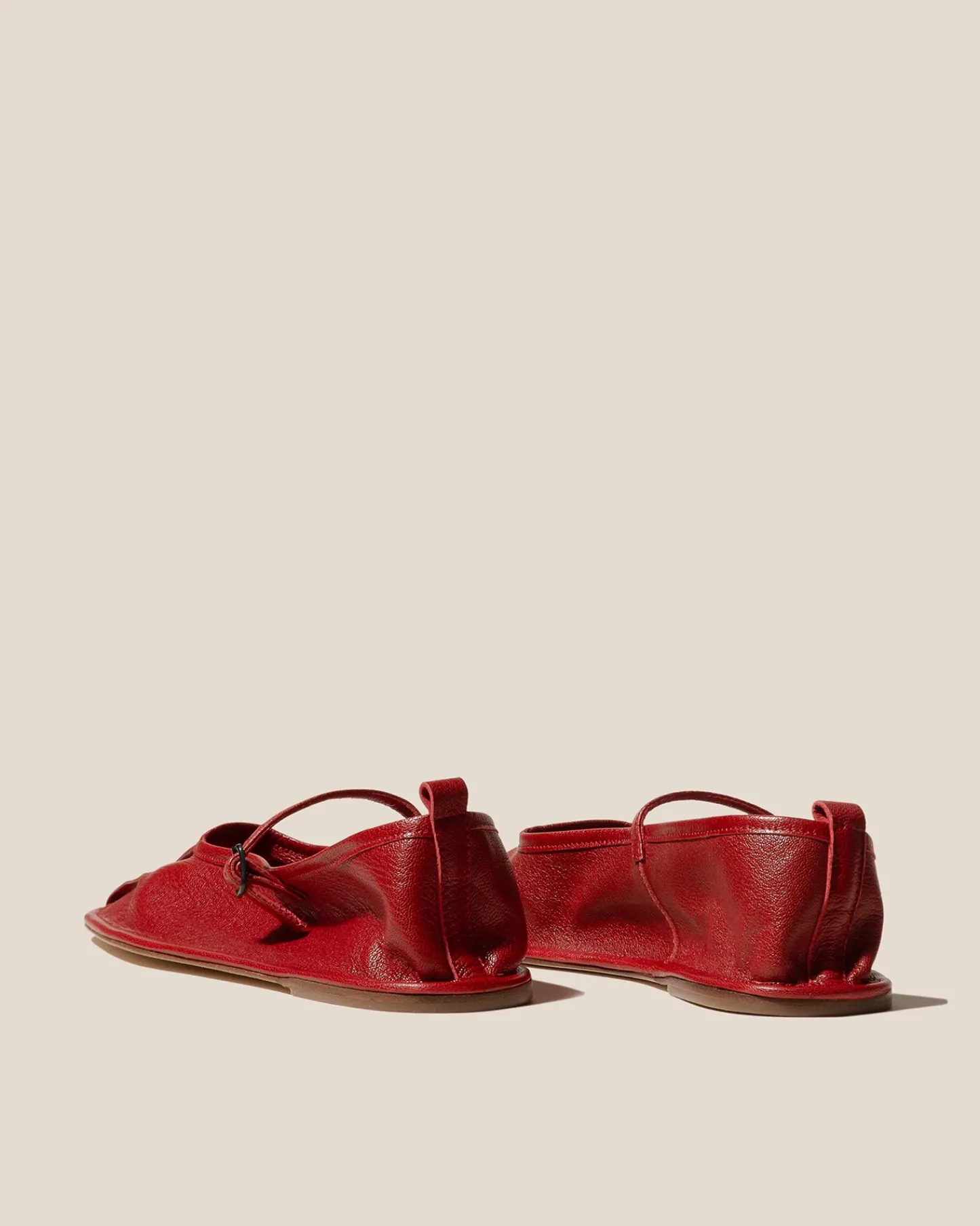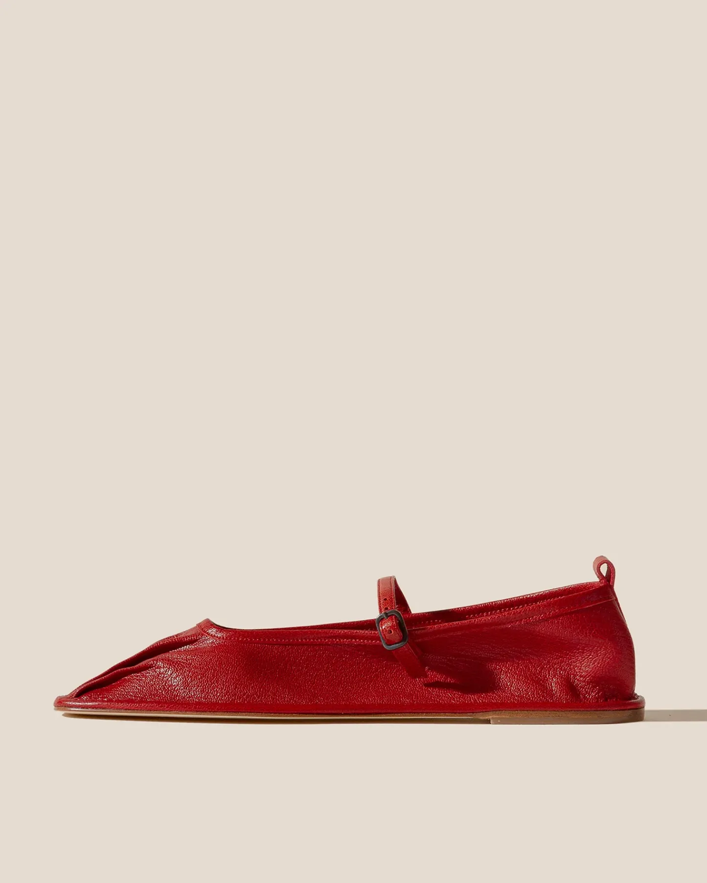 Pleated toe flat Mary Jane crafted in Italian supple shiny lambskin.