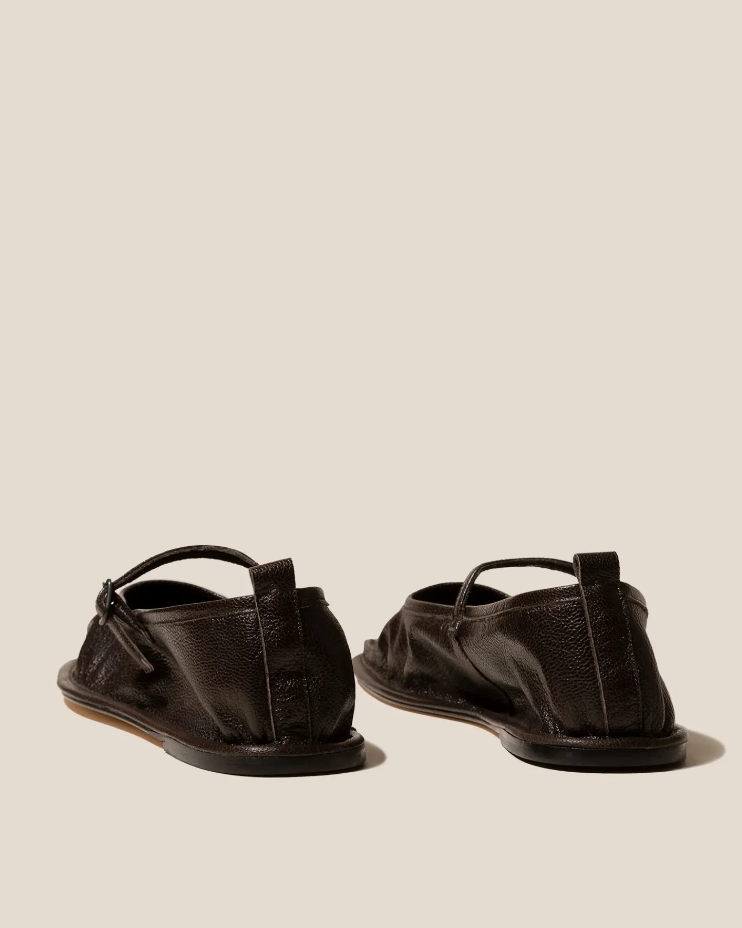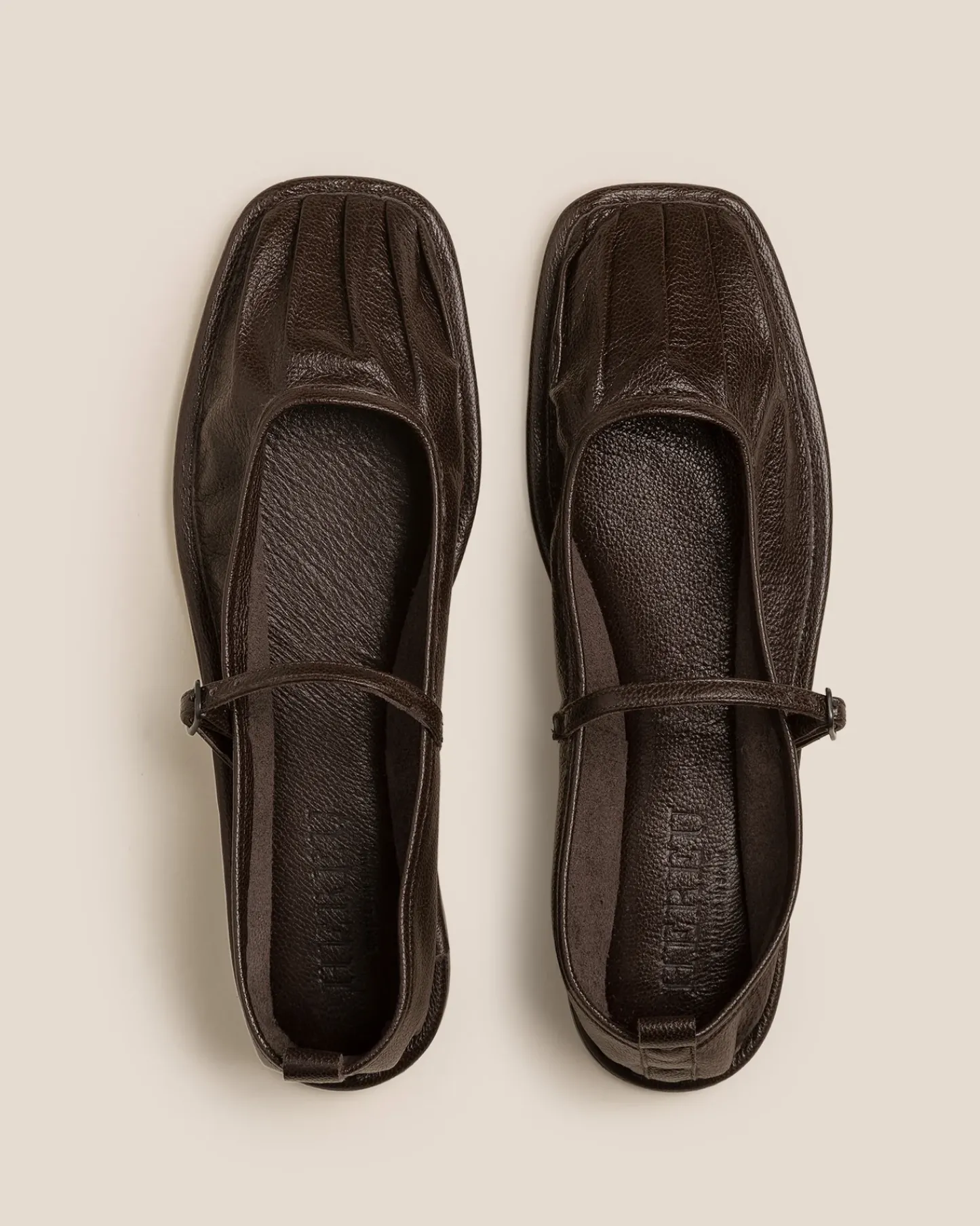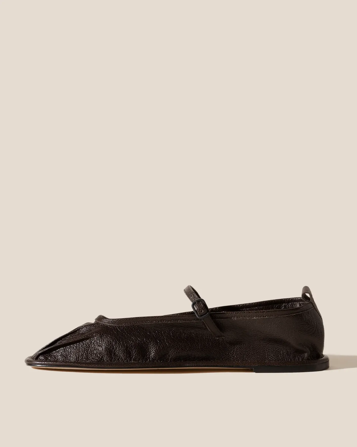 Pleated toe flat Mary Jane crafted in Italian supple shiny lambskin.