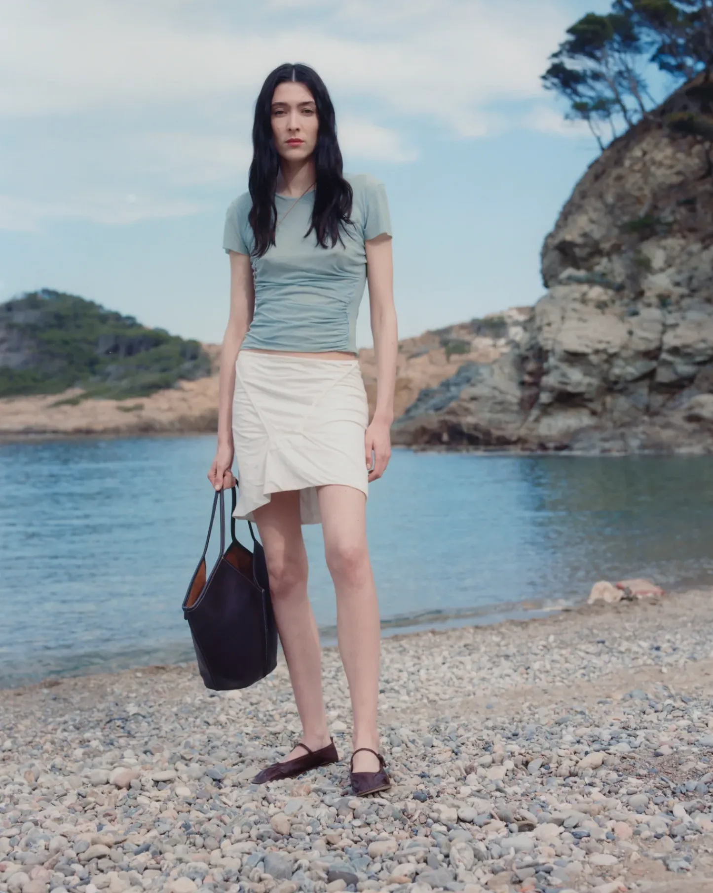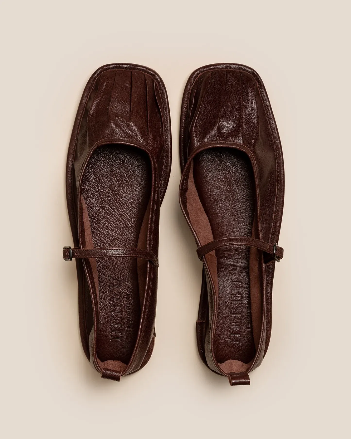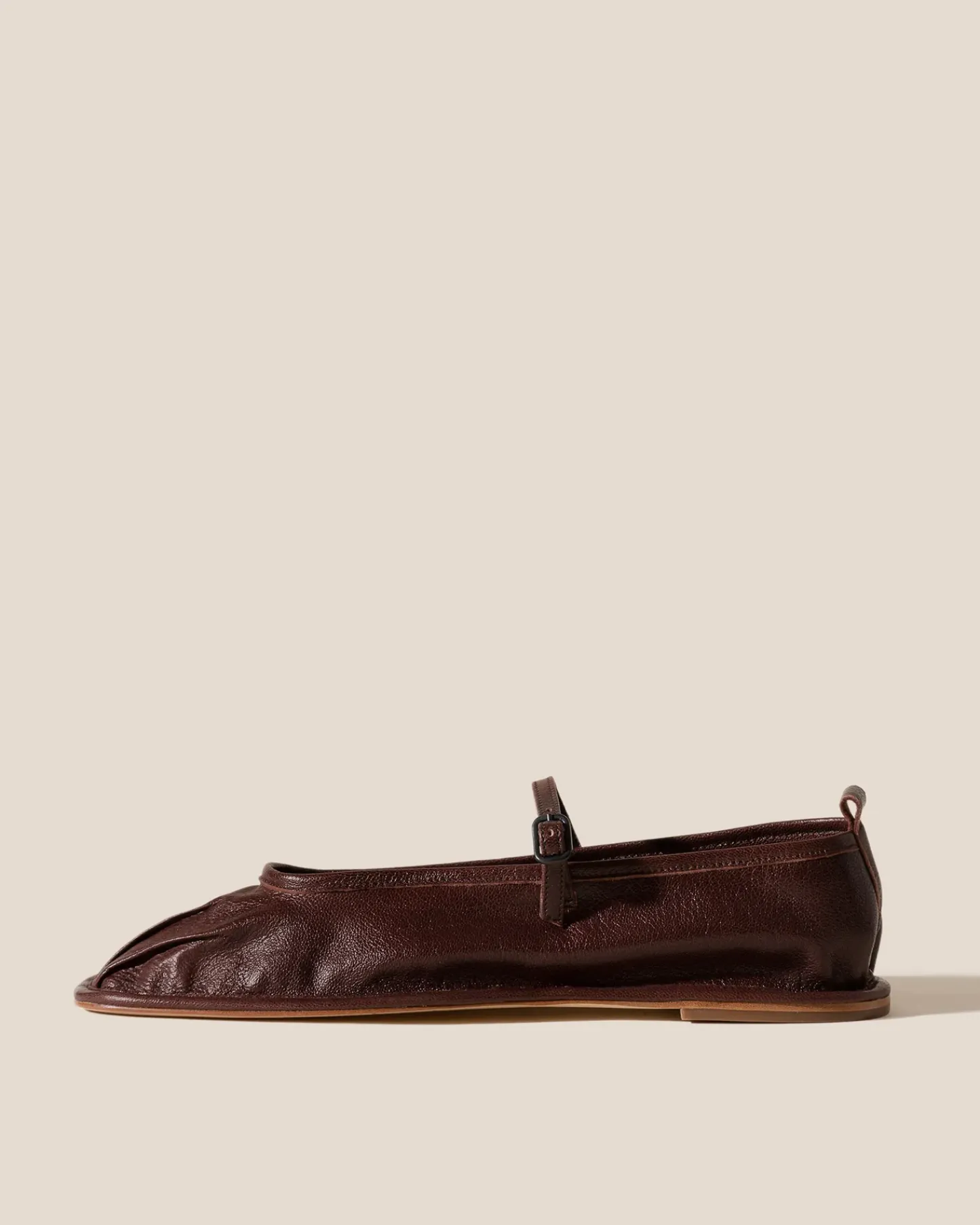 Pleated toe flat Mary Jane crafted in Italian supple shiny lambskin.