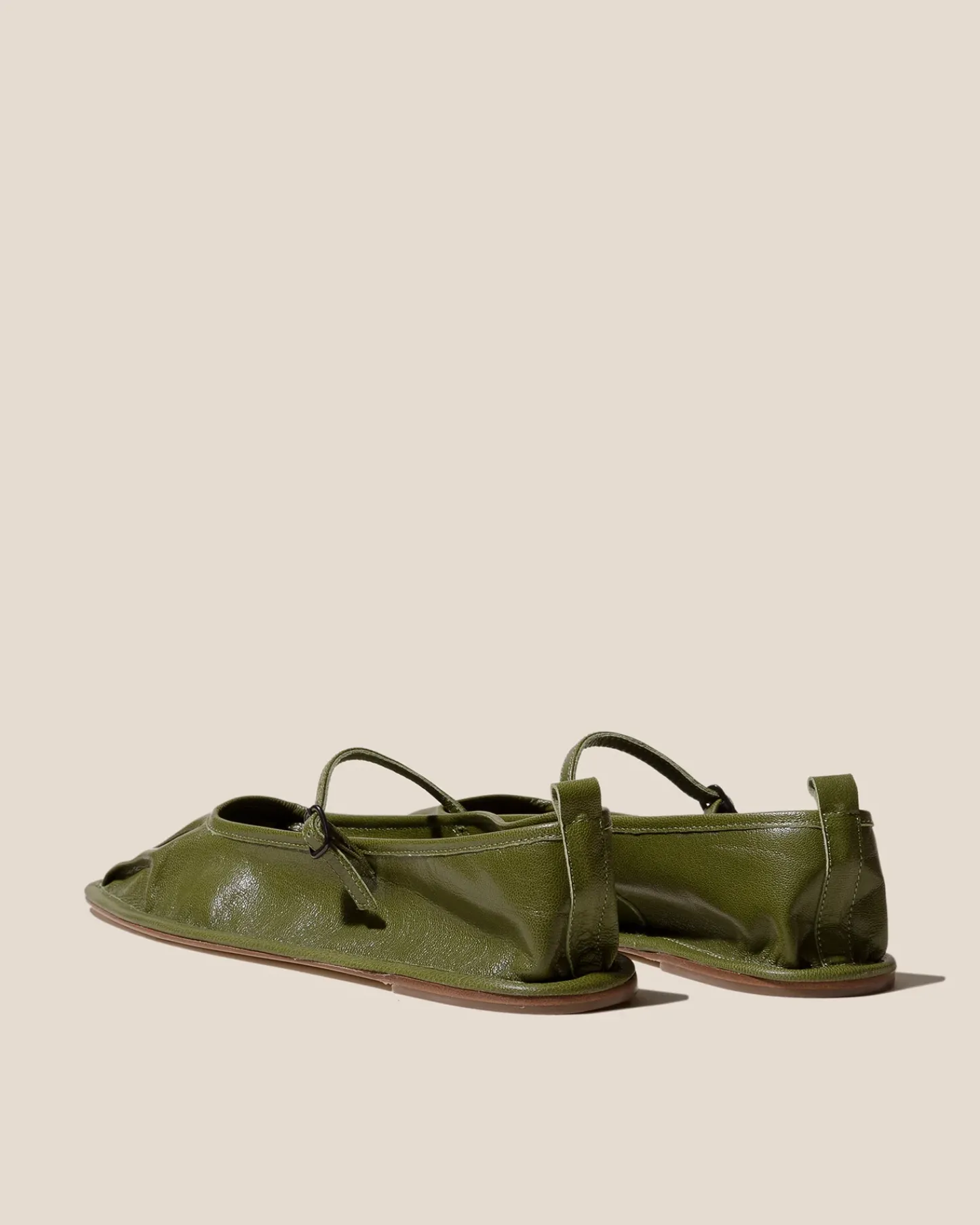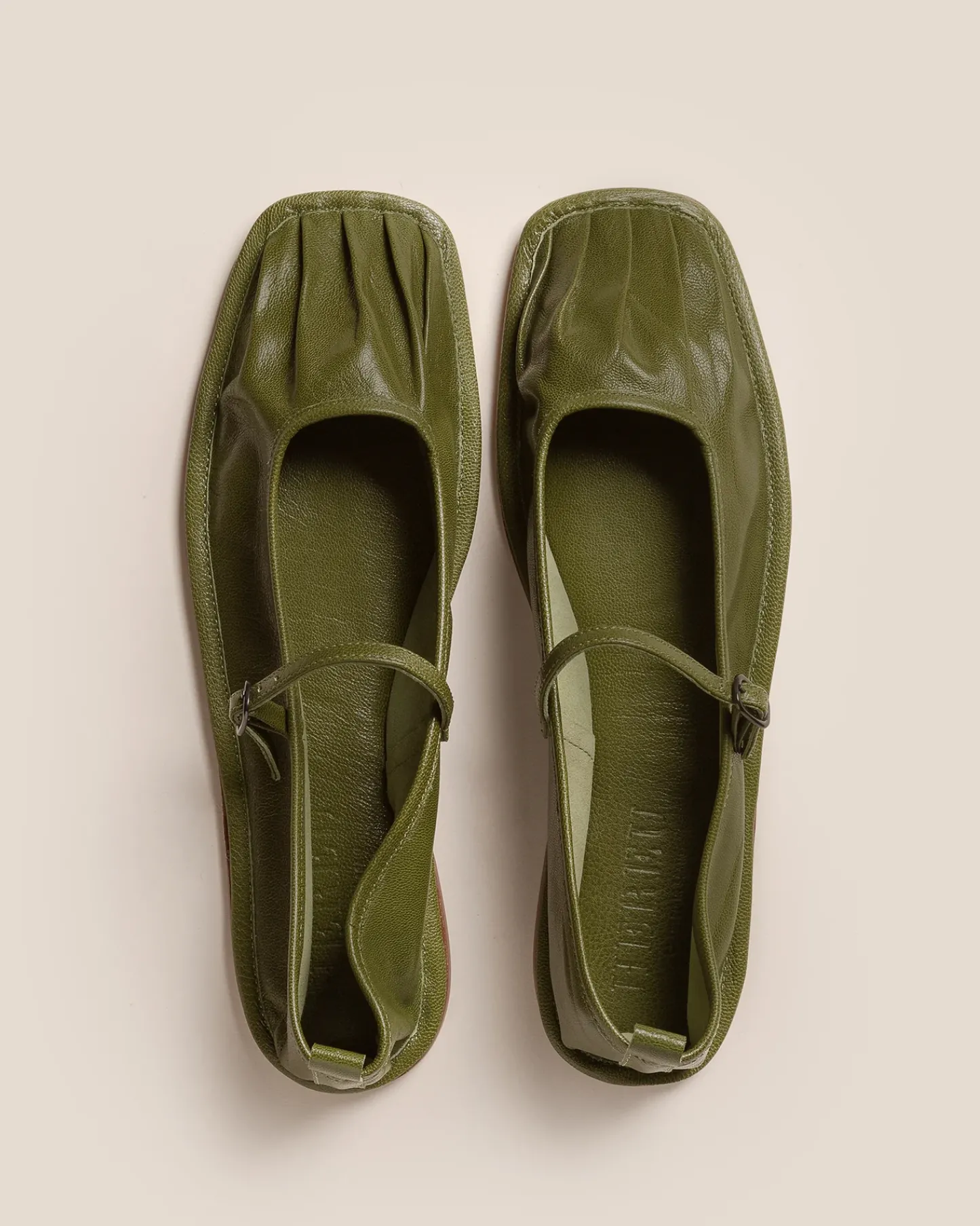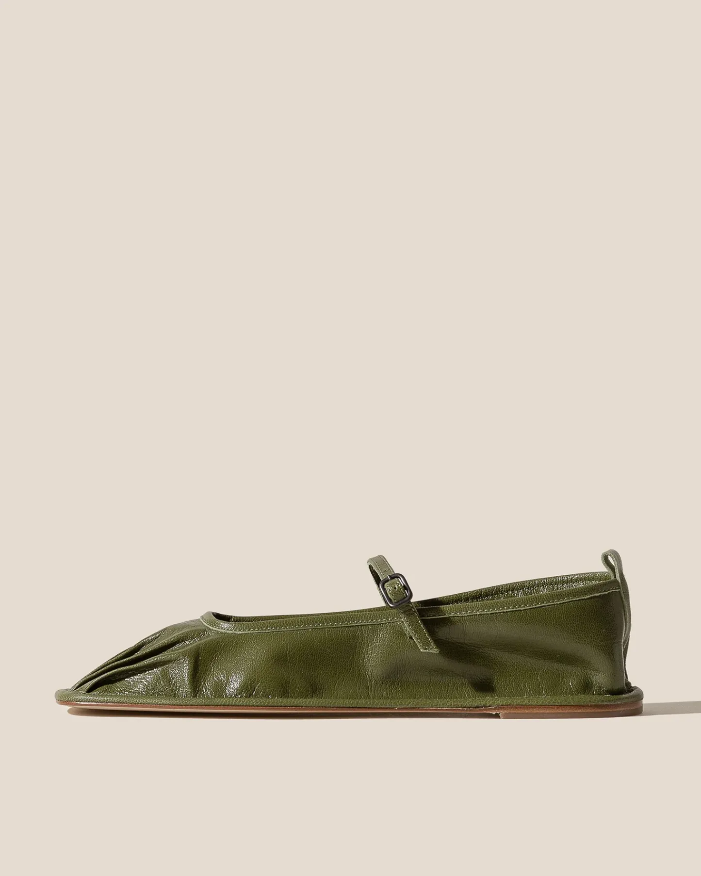 Pleated toe flat Mary Jane crafted in Italian supple shiny lambskin.
