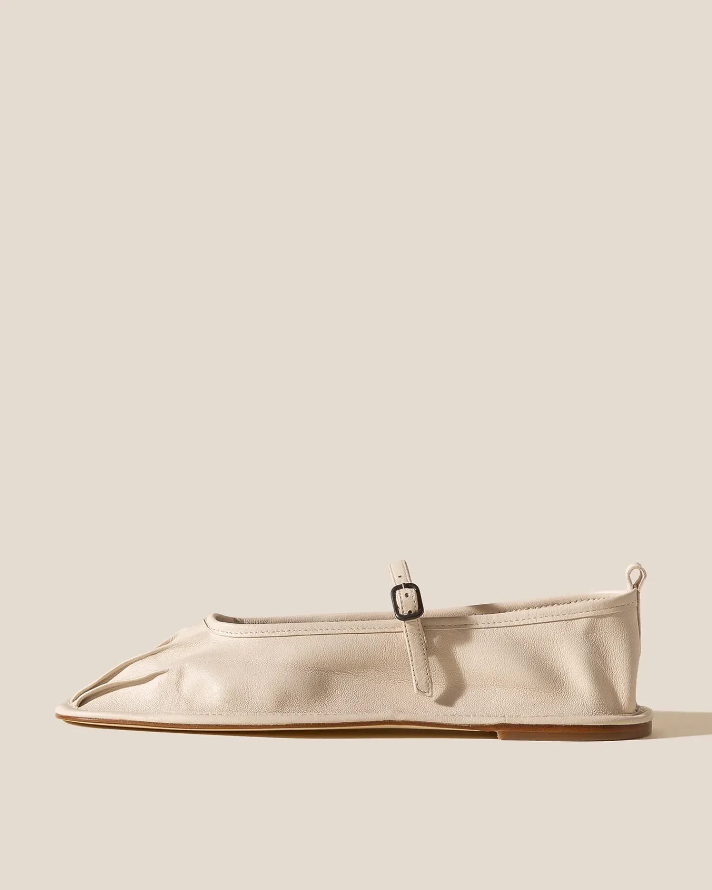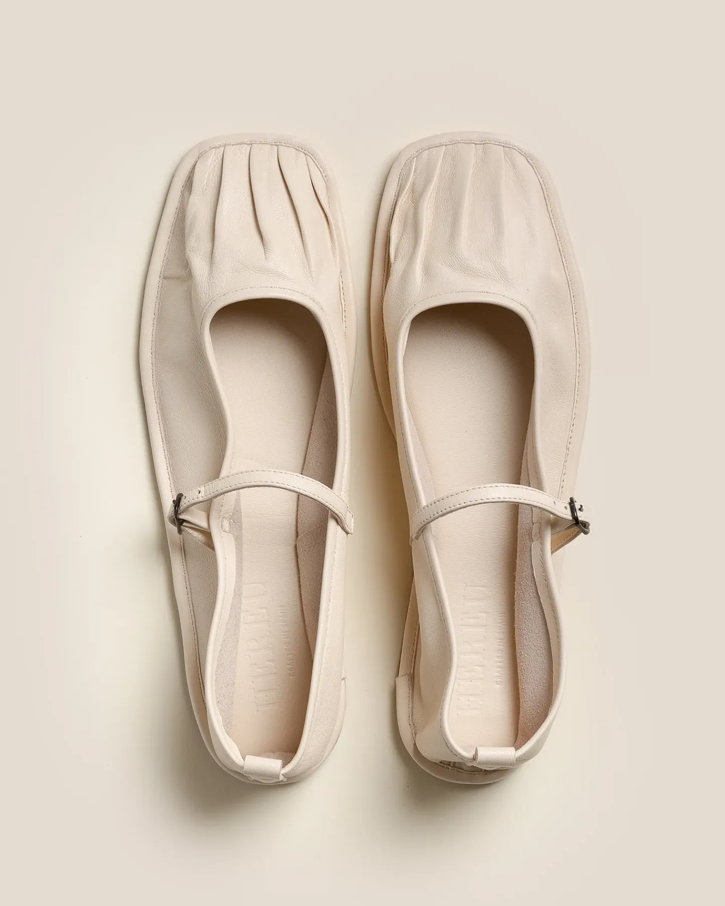 Pleated toe flat Mary Jane crafted in Italian supple lambskin.