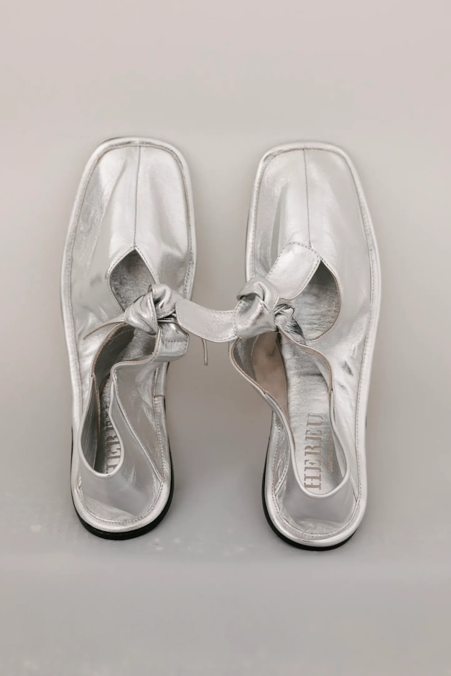 Square toe pump with bow detail, crafted in ultrasoft lambskin.