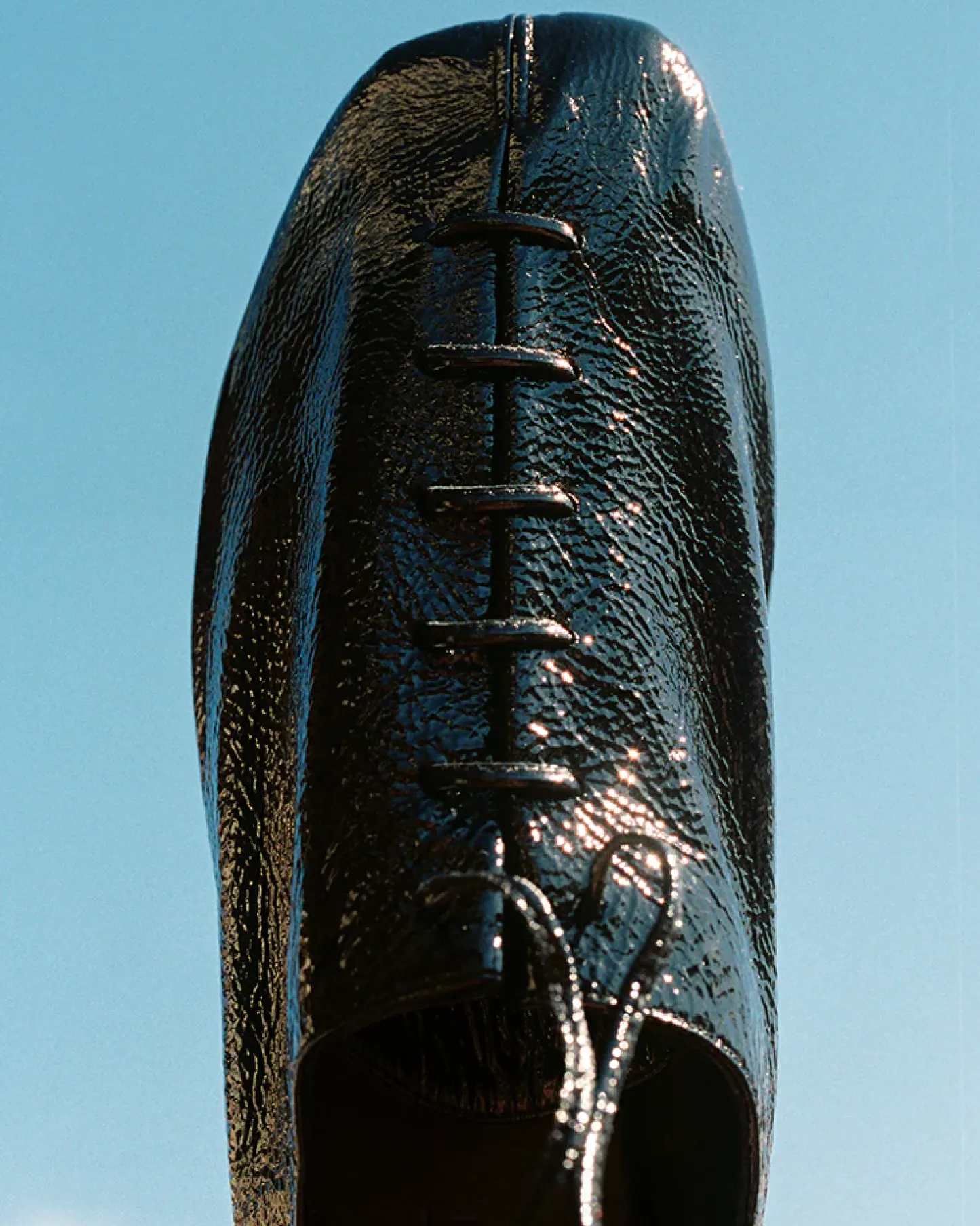 Flat lace-up shoe with bellows tongue, crafted in unlined Italian crinkled glossy lambskin.