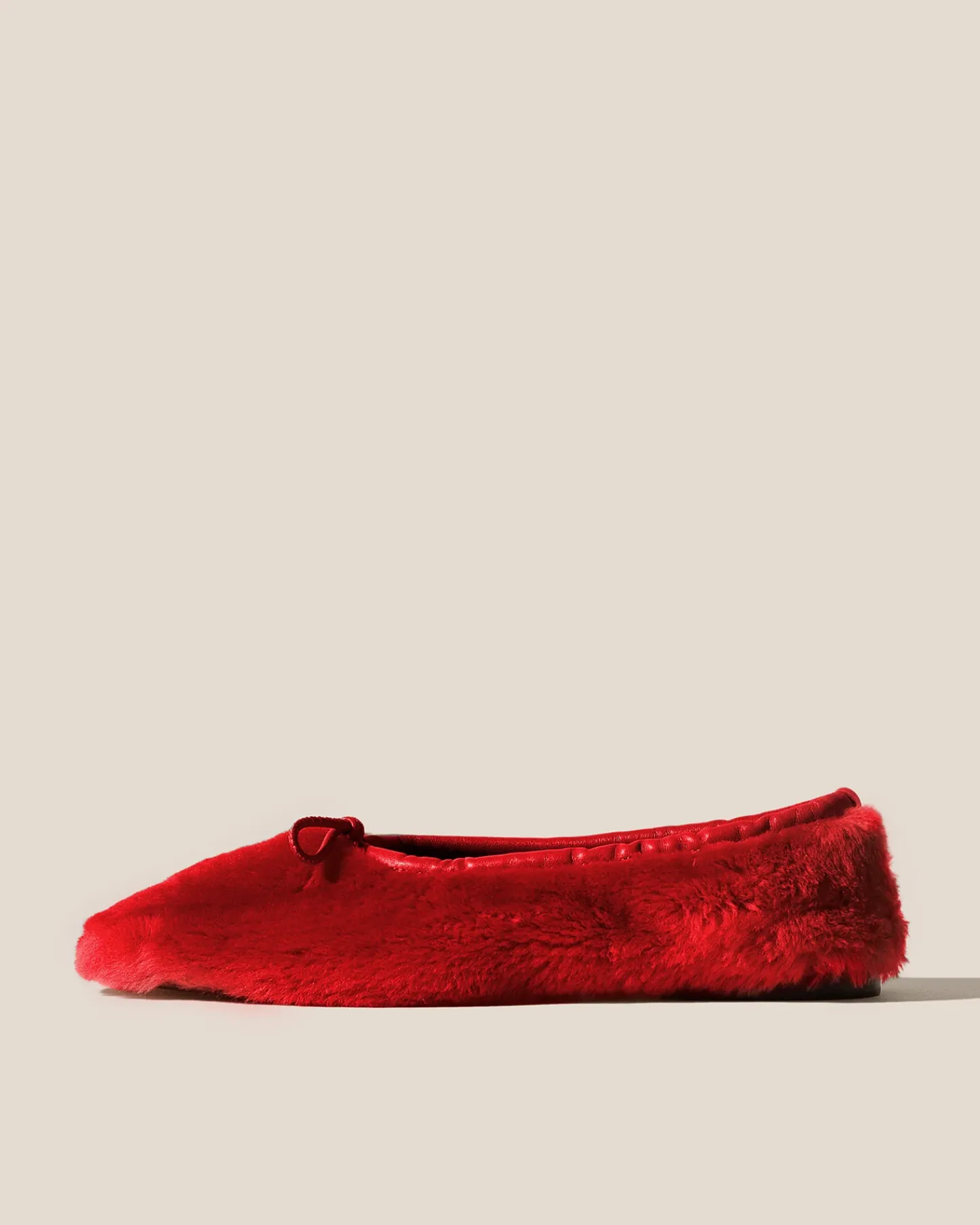 Flat pump crafted in shearling lambskin with elasticated top line.